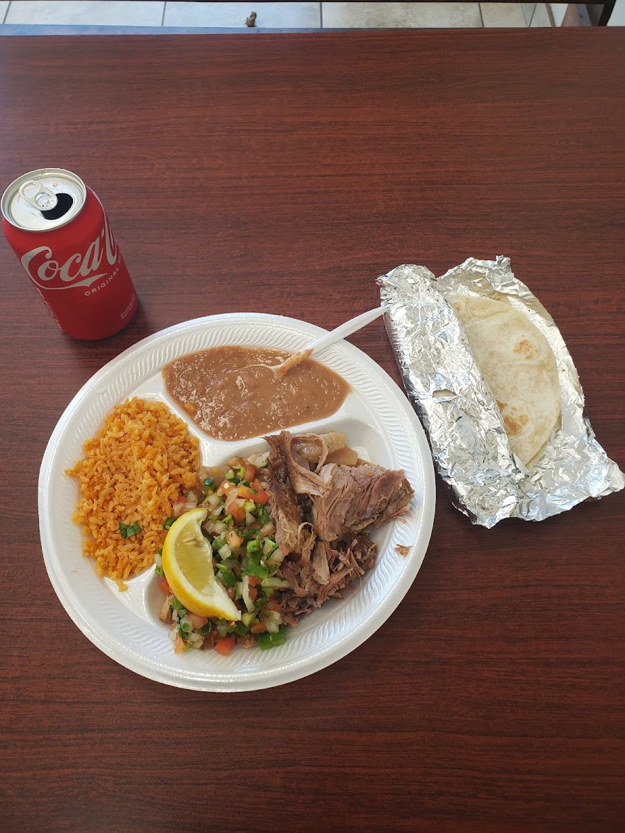 Great food. The carnitas are delicious. Prices are fair, and they have a place to sit and eat there. Bathrooms are always very clean. My 3 year old loves the food (rice and beans with carnitas taco). They speak English and Spanish. *El lugar es limpio y la comida es muy Rica. Las carnitas son mis favoritas. Puedes Comer adentro o pedir para llevar. Las muchas son amables y atienden rapido.*