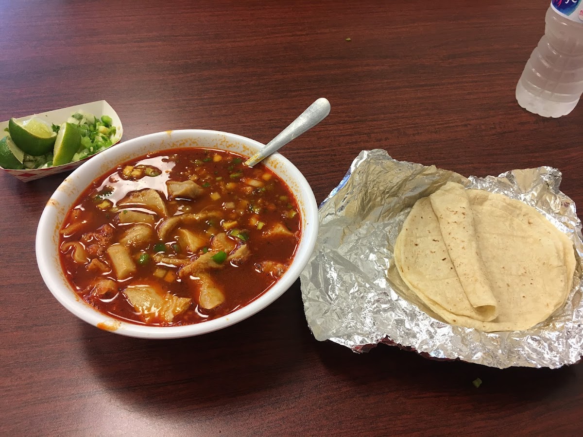 I am not a menudo expert but I’m no rookie either. Coming to Texas from Chicago, I know I have a background in authentic Mexican food but I thought/hoped I could find something even more intense, so much closer to the border. Just 0.2 miles from my hotel, I found it. After a brief walk through the rain (well worth it given the outcome), I got a huge bowl of menudo for 7.99 which included 4 or 5 hot tortillas, presumably ‘a la mano’. I judge menudo on a few criteria. Was the broth greasy? (No). Was the tripe plentiful? (Yes). Was the tripe properly cooked and not gummy or stringy? (It was perfect). Of course they also provided the necessary accoutrements of limes, diced onion and jalapeño. For a moment I wondered where the oregano and chile de arbol was, until I found it already at the table. Easy 5 star review. I’d be here every weekend if I could.