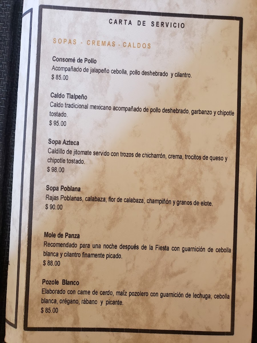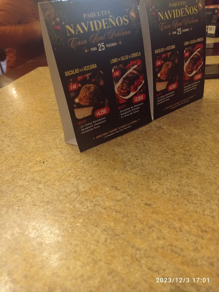 Casa Real Poblana Menu