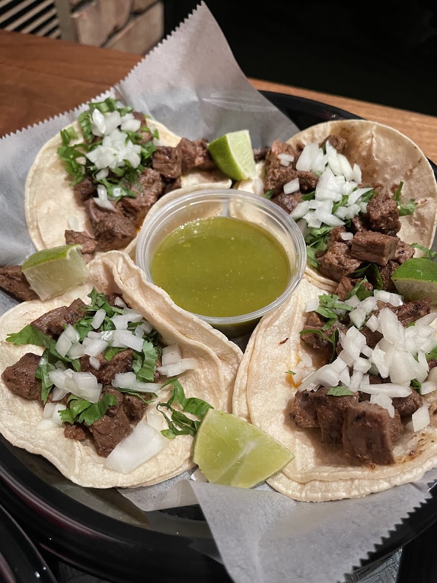 Delicious. Was really good and very filling I really like the ground beef taco, muy flavorful! As well as the chicken taco and the spicy coleslaw and all the salsas. Ariba!!