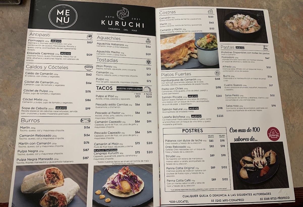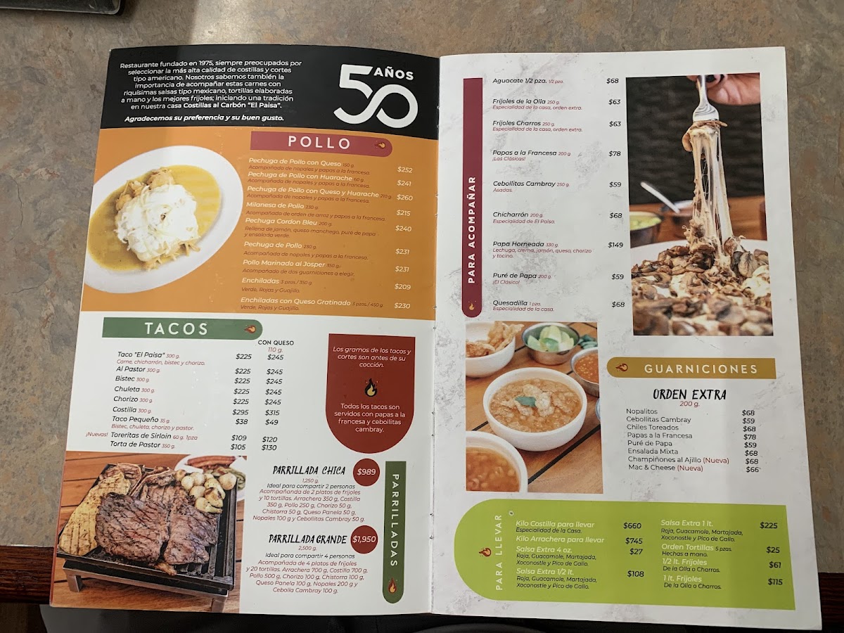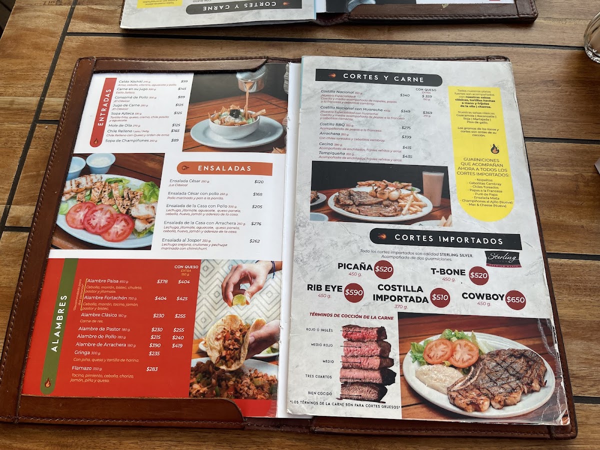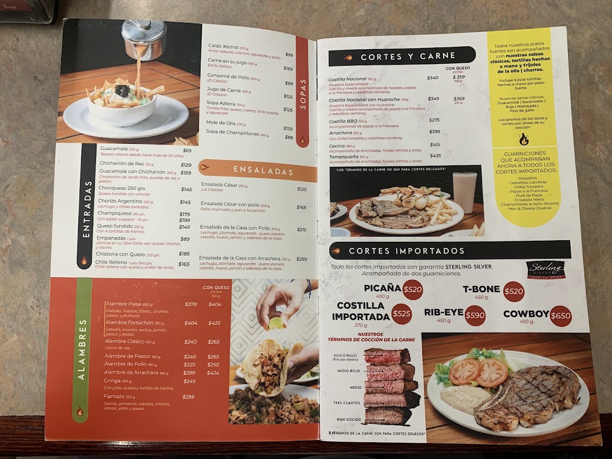 Costilla (350 grs.) sobre huarache (210 grs.) y queso derretido encima (150 grs.). + Refresco