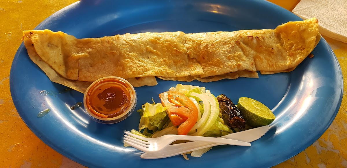 The food here is really good. We had the asada quesadilla is huge! The order of 4 tacos was pretty good also. Prices are reasonable. The menu is very extensive on antojitos like mangonada, ice cream etc.. nice little clean place to eat.