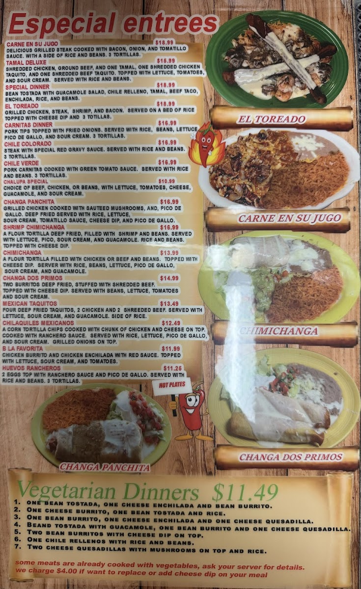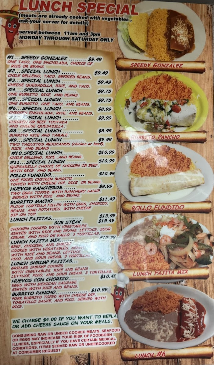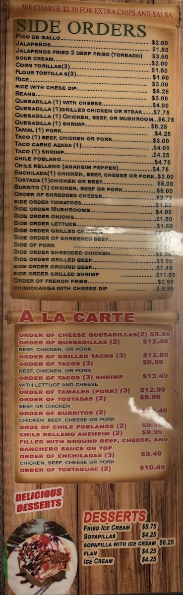 12'' tortilla filled with ground beef, topped with special gravy sauce. Side of lettuce, tomatoes and sour cream.