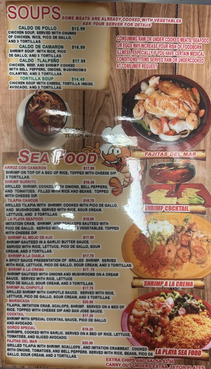12'' tortilla filled with grilled chicken, shrimp and rice. Topped with cheese dip.