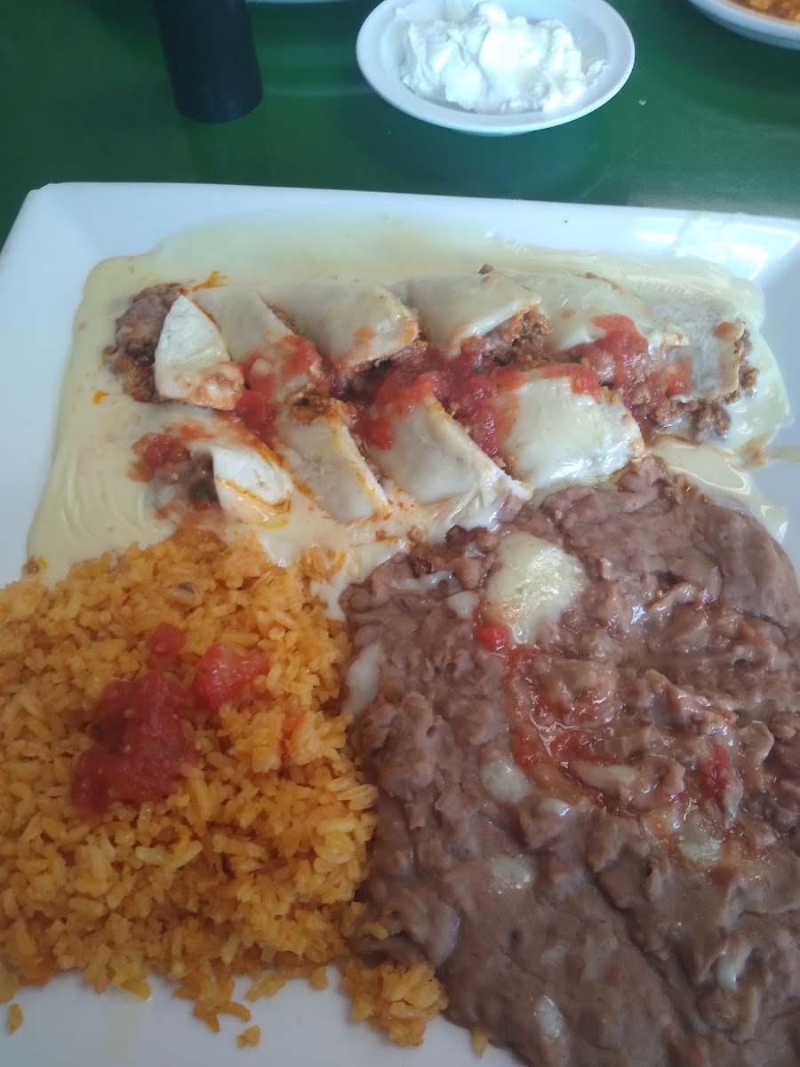 Amazing food! The trio taco salad was enough for 2 people. Salsa was nice and fresh and not too spicy like many places, waitress was great, tamale was yummy, definitely recommend.