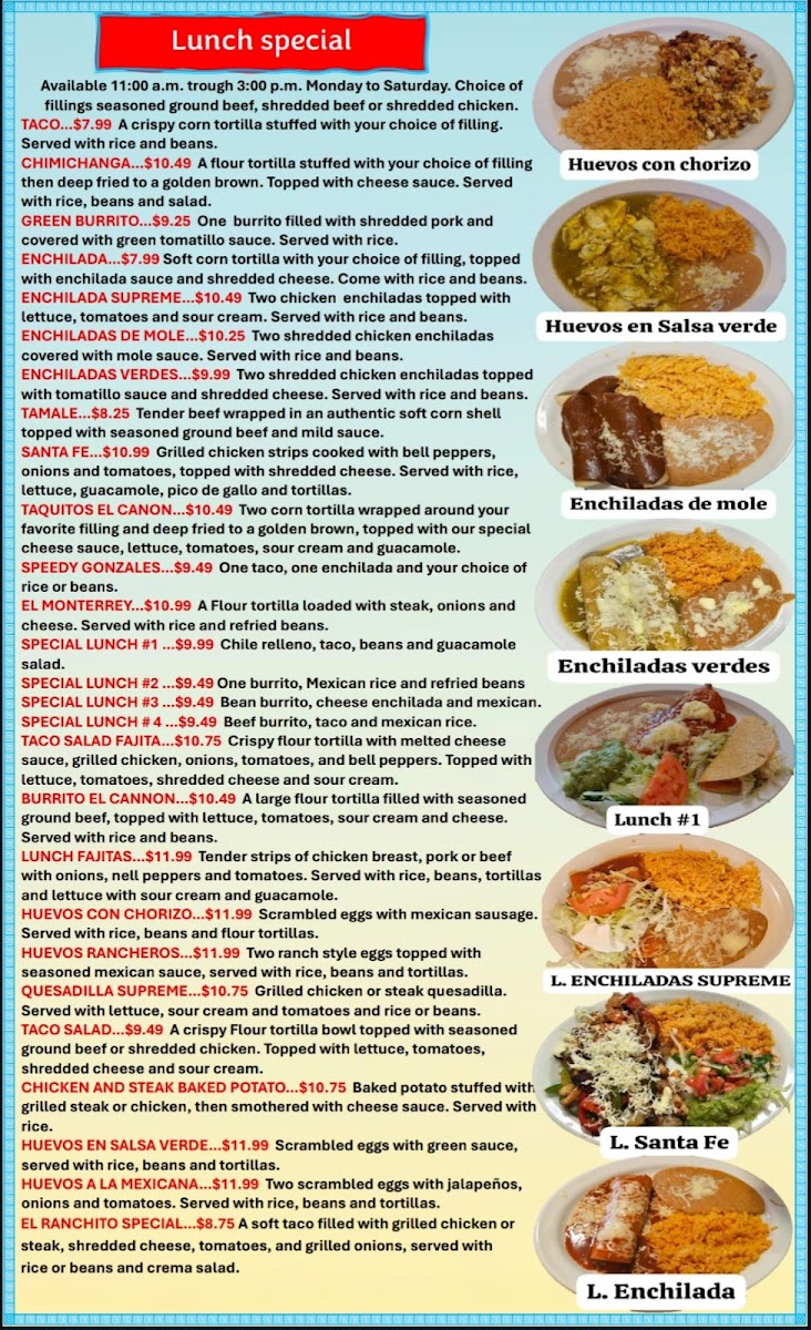 Soft corn tortilla with your choice of filling. Served with enchilada sauce and shredded cheese.