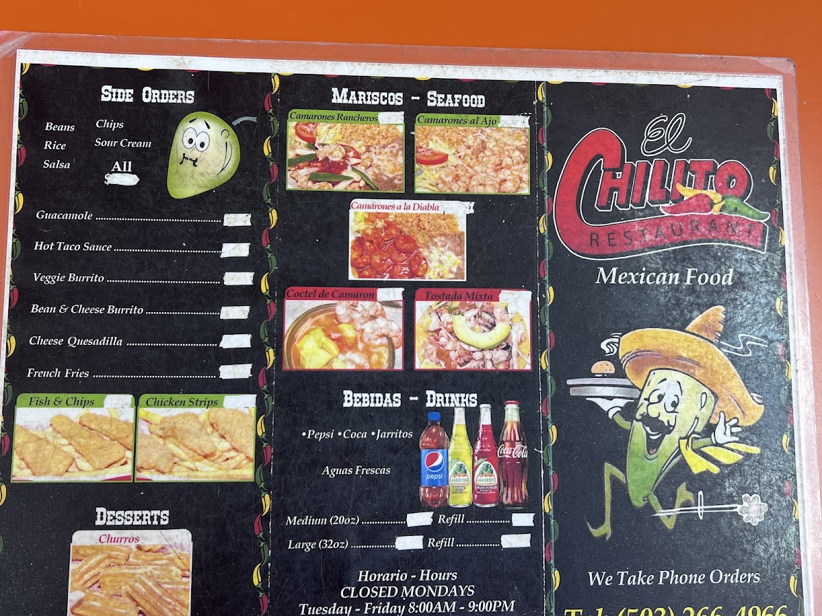 Soda-several flavors: Mandarin, Pineapple, Guava, Lime, Tamarindo.