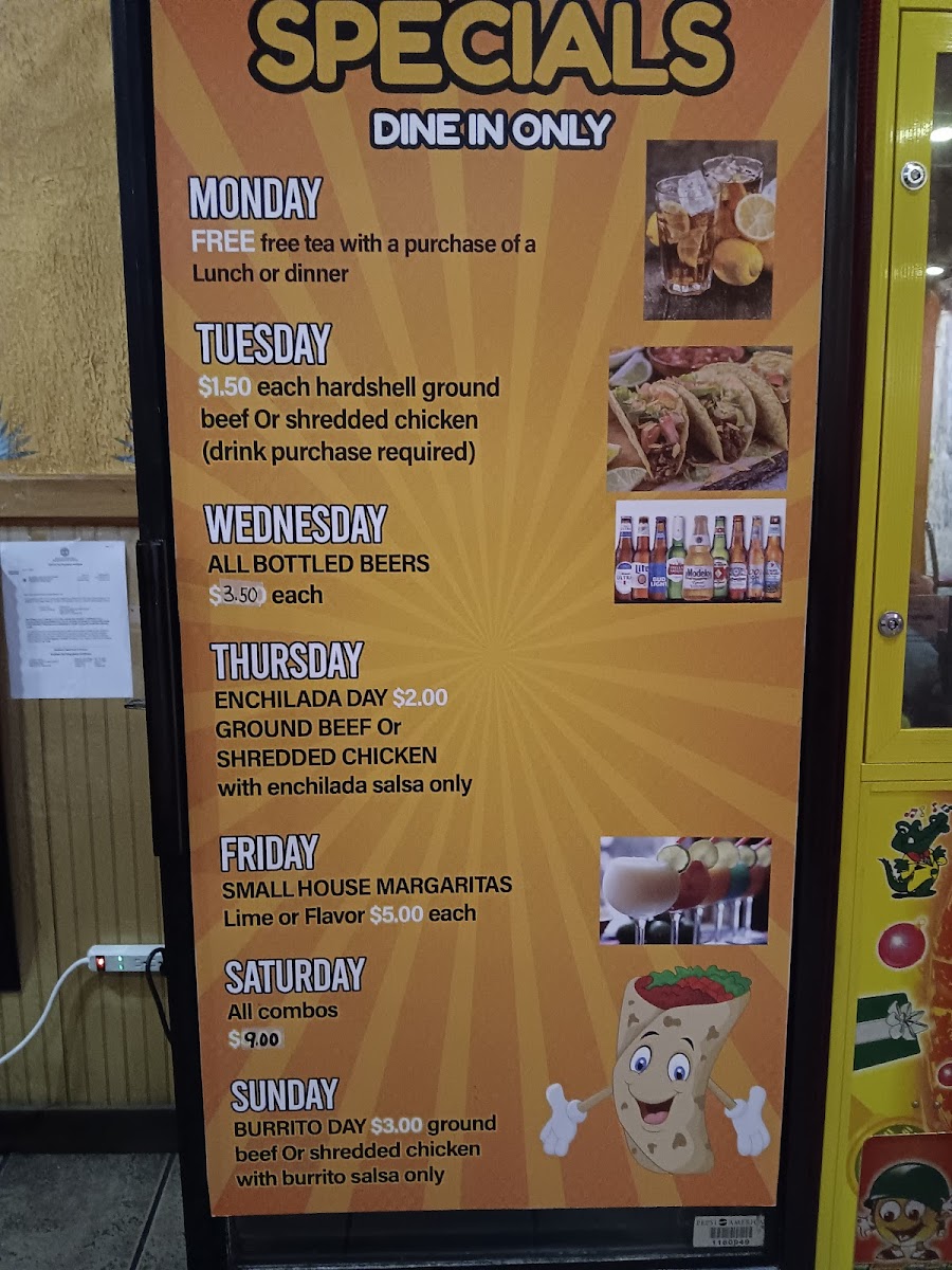 10" flour tortilla filled with ground beef or shredded chicken. Topped with cheese dip. Served with lettuce, pico de gallo, jalapeños, and sour cream.