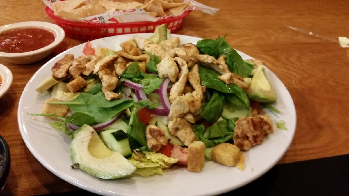 I ordered 2/1 margaritas which were pretty basic, premade with a lot of sour mix. I asked if they had skinny margarita options but was told no, but they do offer flavors. I ordered street tacos - which were served just tortilla and meat with cilantro and onion in condiment cups on the side. I also got charro beans and rice. Not the best I’ve ever had but they were good. Hubs had grilled chicken with veggies. It’s pretty much a basic Mexican restaurant. Nothing outstanding but the food was good. Not a fan of the margaritas. I felt like the food was very overpriced. The restaurant was mostly empty when we arrived about we were seated in the very front corner booth; I would have preferred a better seating option since they weren’t busy so for atmosphere I gave a 3stars. Service was fast but not super attentive.