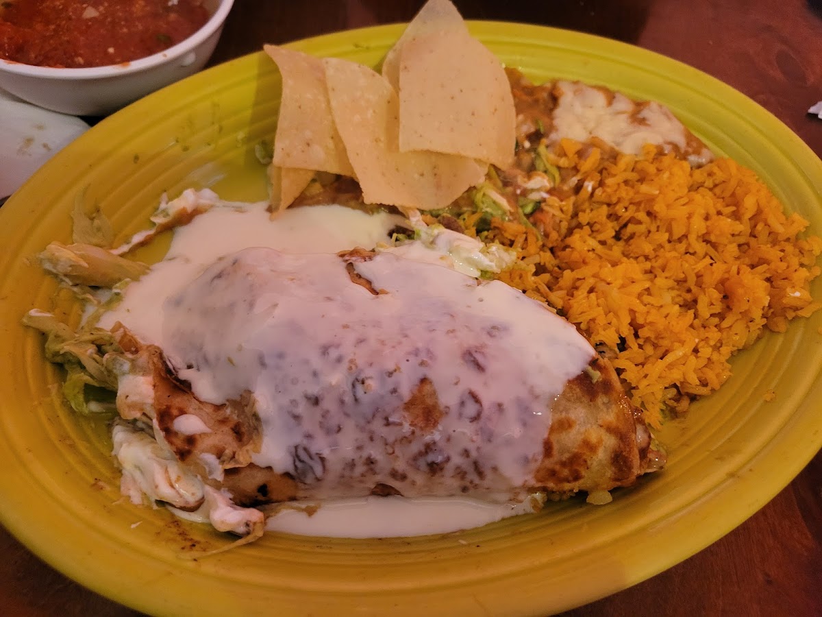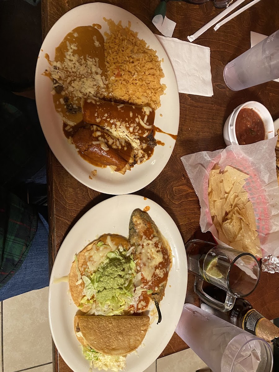 Good margaritas. The Chile Colorado had some kick to it. I was expecting bland, so pleasantly surprised. Fresh tortillas. Standard rice and beans Not a lot of dining options around so this was an unexpected treat.