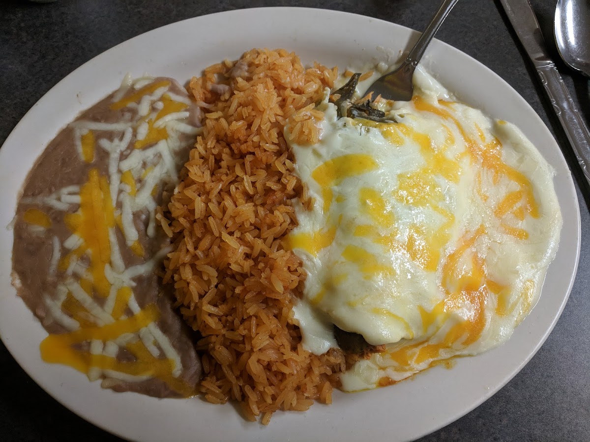 The more Tex Mex I eat, the easier it is to differentiate in quality. El Tepeyac has been recommended to me numerous times by friends from the Blanchard area. I happen to be on my way to Duncan from Norman on highway 9 and I hadn't eaten. I glimpsed the well lit restaurant, and immediately turned in. It has a gorgeous display out front dedicated to la Virgen de Guadalupe, and the more beautiful artwork and festive decorations inside. I was pleased to note that they offered a michelada on the menu, which I enjoy very much. Then I ordered a chile relleno stuffed with spiced ground beef and covered in a green tomatillo sauce. It came with the obligatory Spanish rice and refried beans. Don't get me wrong, I love Spanish fries and refried beans but they are not all created equal. These refritos tasted fresh, and the rice was savory. But the star of the show was definitely the relleno. It had been sliced in such a way that the cumbersome top of the pepper had been removed and while the pepper had clearly been seared well, the delicious beef spiced to perfection that it was filled with was spot-on. I normally eat about half my food at a restaurant, and then take the rest home for another meal. I couldn't stop eating the relleno, and I ate about half the rice and the beans as well. I was stuffed with delicious Tex-Mex as I walked to my car and saw the sun just below the horizon. The remainder of the drive home was very pleasant, and I look forward to taking my husband to El Tepeyac.