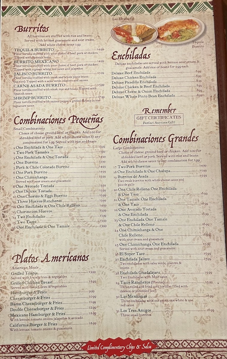 Small Combinations Served with Rice & Beans (add $1.99 for white cheese sauce on any meal. Add $1 for pork or shredded beef.
