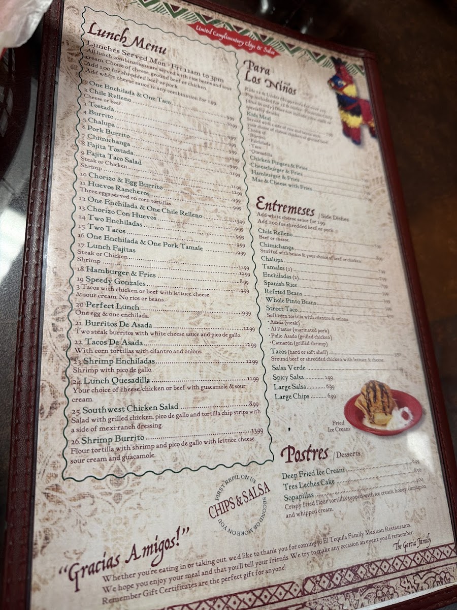 A flour tortilla filled with beans and your choice of ground beef or chicken and deep fried. Served with rice, beans, lettuce, sour cream & guacamole.