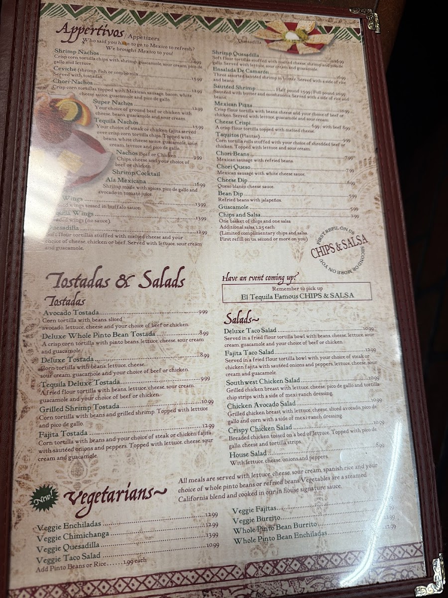 Crispy flour tortilla with refried beans and cheese and your choice of beef or chicken. Garnished with lettuce, sour cream and guacamole. (add $1 for shredded beef)