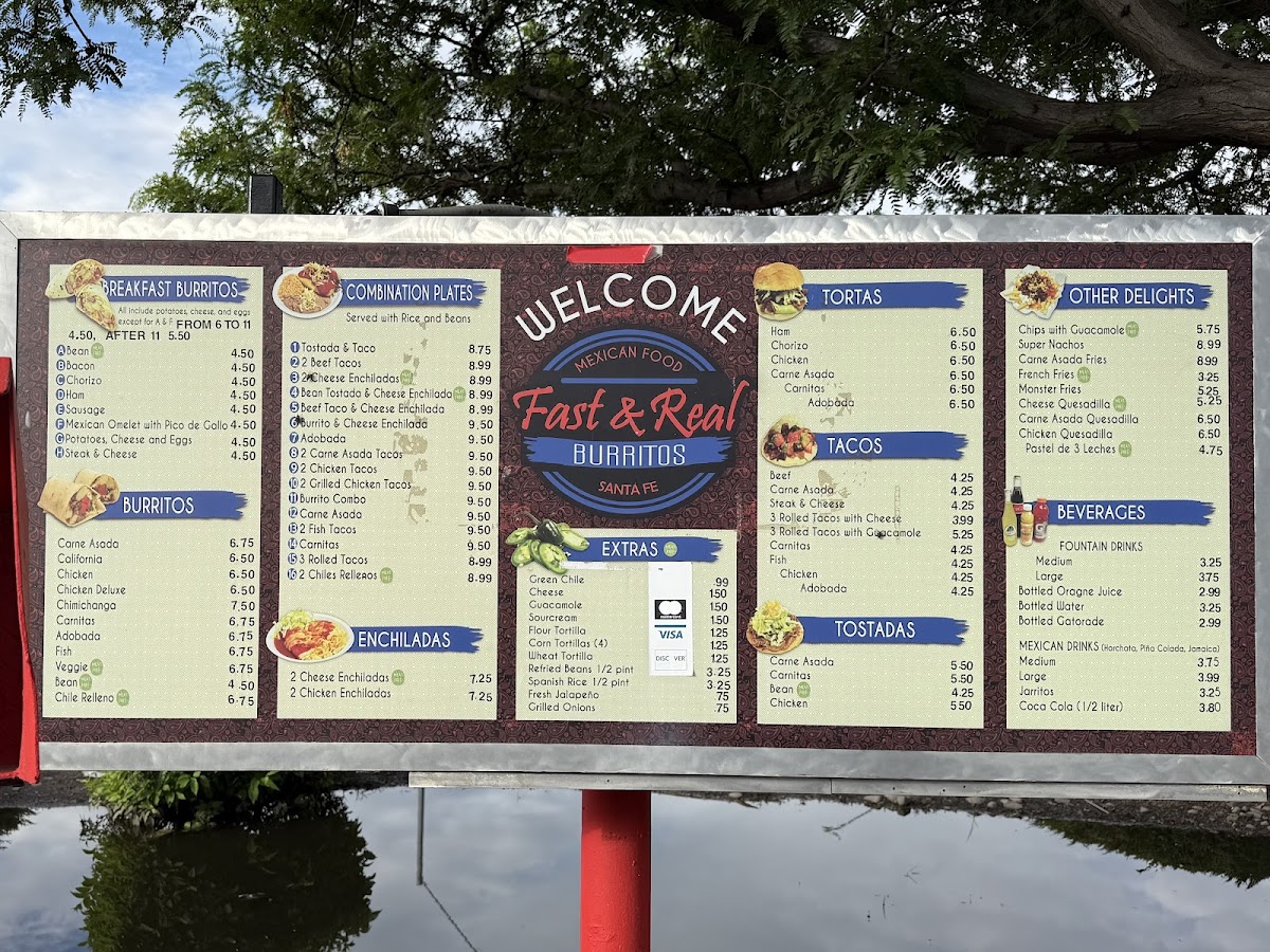 Fast & Real Burritos is a Mexican restaurant located at 5741 Airport Rd, Santa Fe, NM 87507, United States. It has received 438 user reviews. The menu features a total of dishes with highlights including Carne Asada Fries and Chicken Chimichanga, offering a quick and authentic Mexican dining experience.