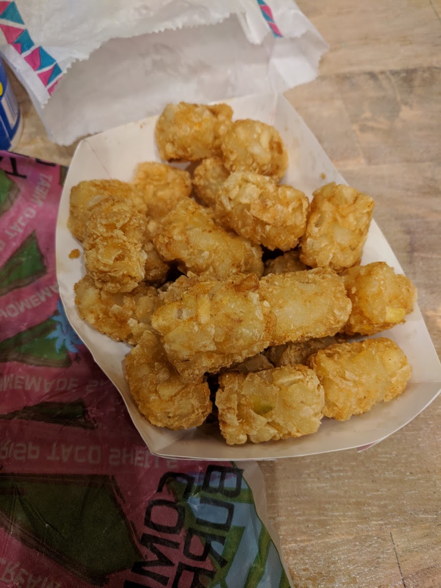 We love this place as it's what taco time used to be. Good regular tacos, good burritos, and good tater tots. The dining room is permanently closed, and it's pick up only. With the park just around the corner, take a blanket, a Frisbee, and enjoy dome good tacos, sunshine, and recreation.