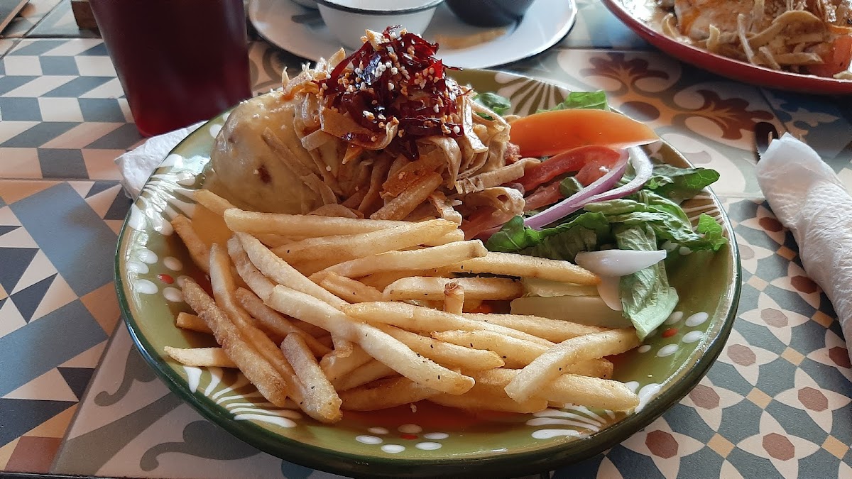 Food is great, good service, and the place is really beautiful. Downstairs it is more low-key and basic but upstairs has amazing colors and art and live music. It has a very rustic, Mexican look and feel. Portions have a good size and the food usually doesn't arrive late.
