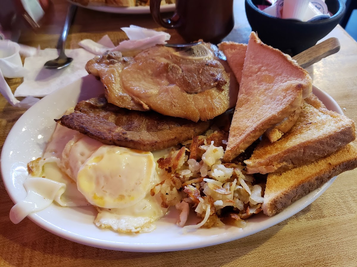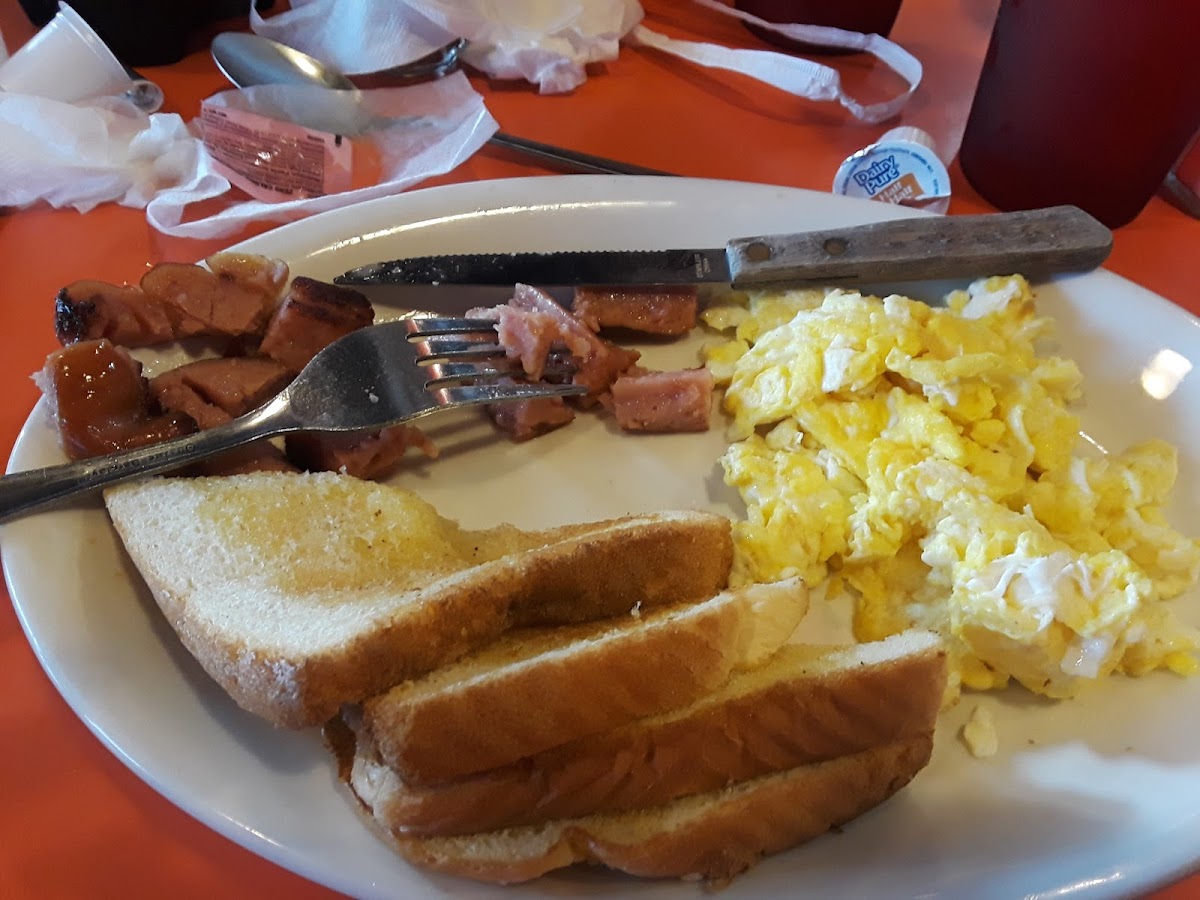 I ordered the #17 breakfast...2 eggs, sausage, hashbrowns, grits, toast, & 2 pancakes. This is a lot of food, but so delicious. Wait staff provide excellent service. My only criticism of this restaurant is that the men's restroom is nasty & outdated. If not Covid 19, you think you may catch any kind of virus when using this restroom.