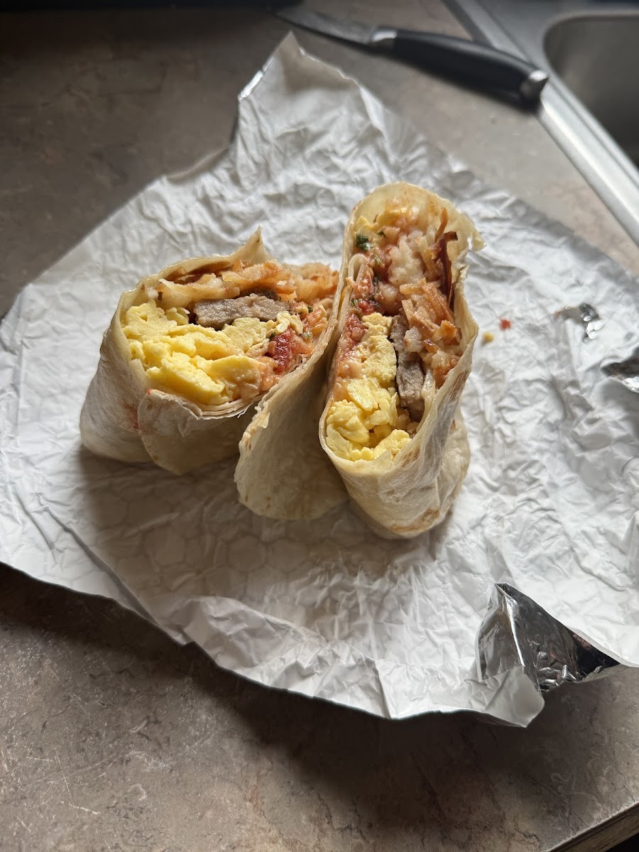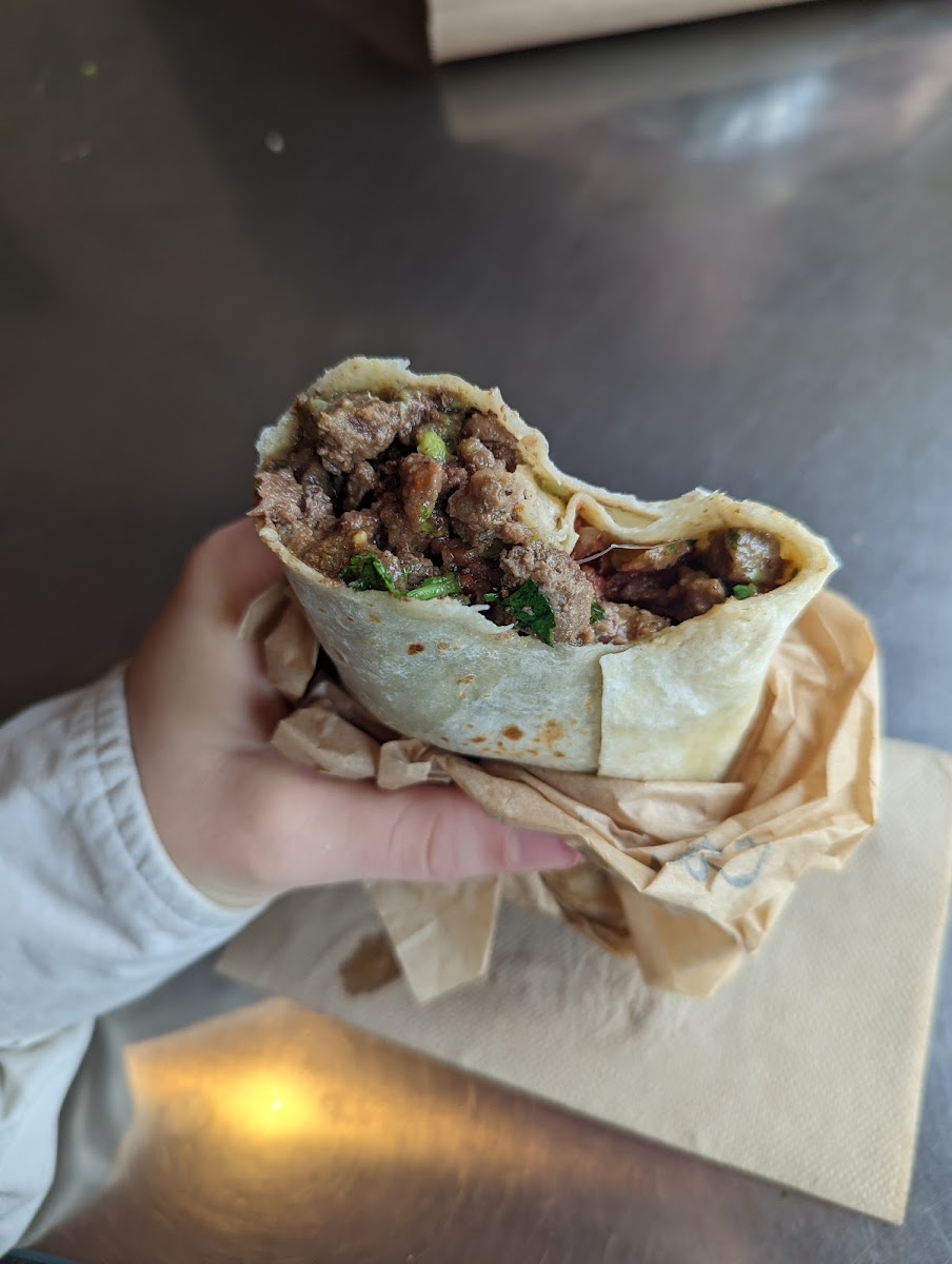 Huge and yummy burritos. Good to take on the go or there’s is a dining area off to the side. So much staff working everything was quick and everyone was more than hospitable and friendly!