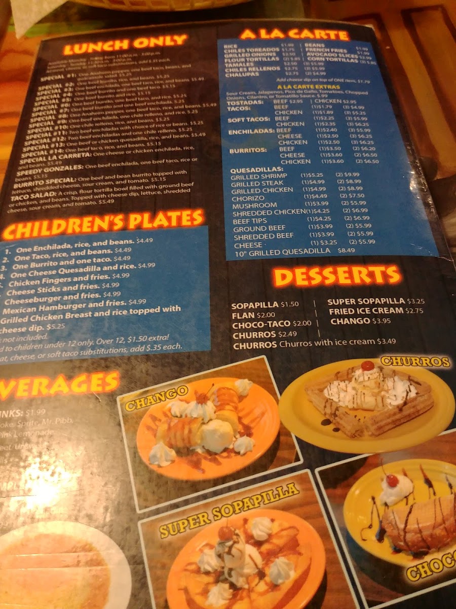 One Beef Burrito, One Chile Relleno, One Beef Or Chicken Quesadilla