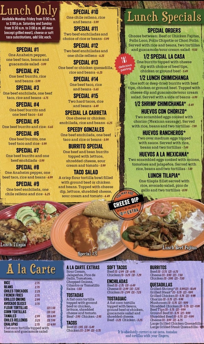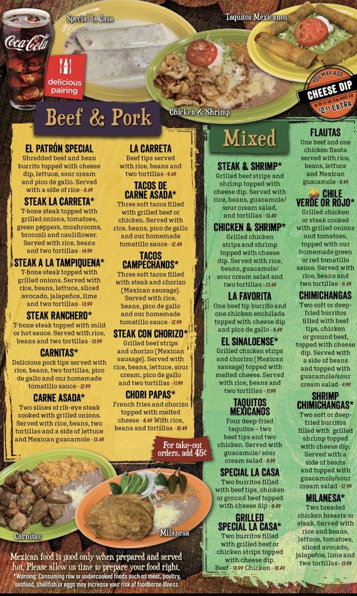 One Beef Enchilada, Two Beef Tacos & One Beef Chile Con Queso