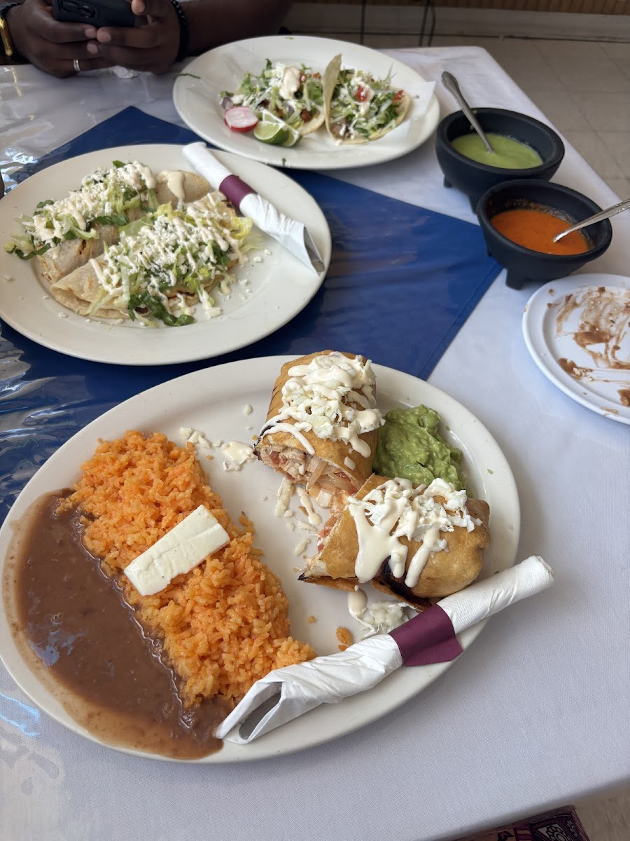 HOLY SMOKES. These tacos were soooo good and fresh. They did take a few minutes to get to my table but it was worth the wait. The only thing I don't recommend is their iced tea kind of drink. Update: Came back a few years later and the wait is still pretty long but my goodness their food still hits. I’ve added some updated photos. I had the chimichangas de pollo, my husband got the el pastor taco, carnitas, and tinga quesadillas. My favorite dish so far is the chicken enchiladas and favorite drink is horchata.