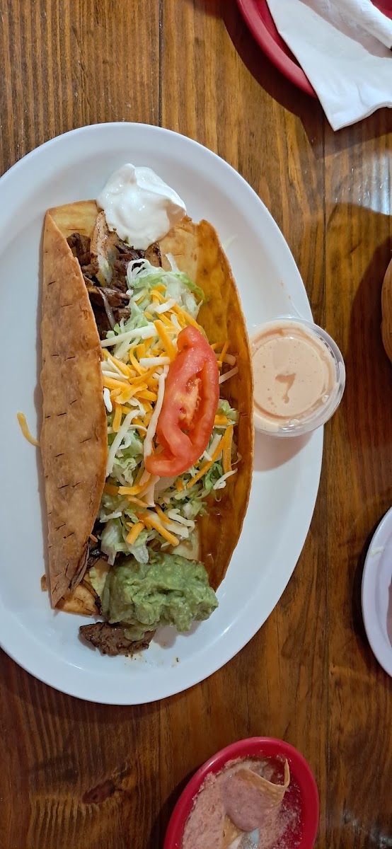 We stopped here for takeout while on a road trip and the food was very good! The wait for take out was about 10 minutes and was packaged with care. The restaurant was very generous with their chips and salsa. The highlights of our meal were the white queso, red salsa, beef flautas, and sour cream enchiladas. The beef flautas were awesome and the queso is top-tier! The service was awesome and I’d recommend making a stop here if you want a delicious meal!