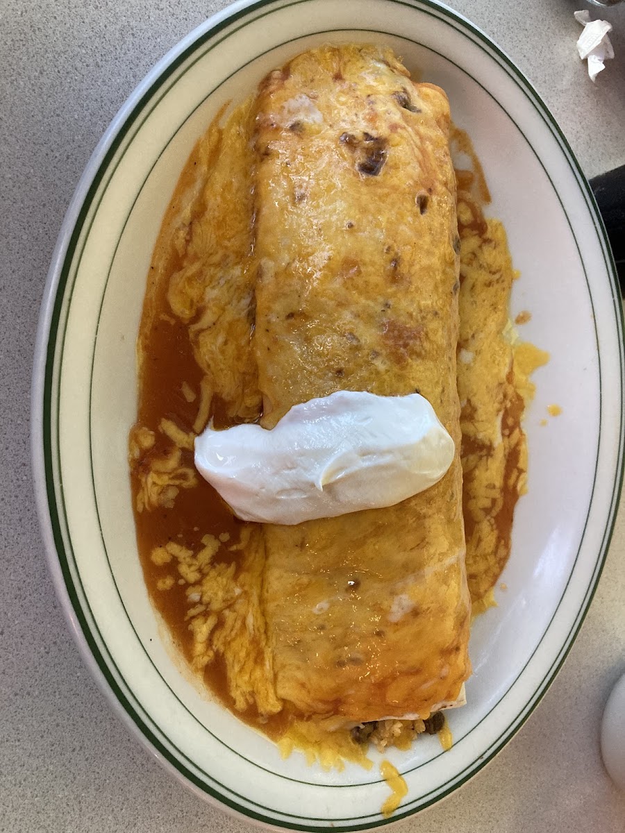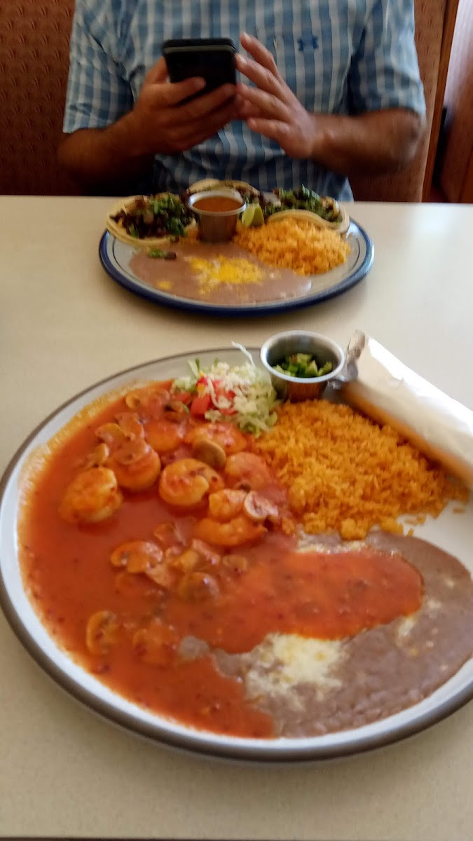 Had a shrimp burrito and it was a 2 dollar add on for shrimp and plenty of shrimp just not enough cheese other then that very relaxing place and very good food and people there was very good at there job the 2 waitresses should be waitresses of the month there was three there at the end but I didn’t talk with her but she seemed to be very good at what she did to definitely a place to come back to