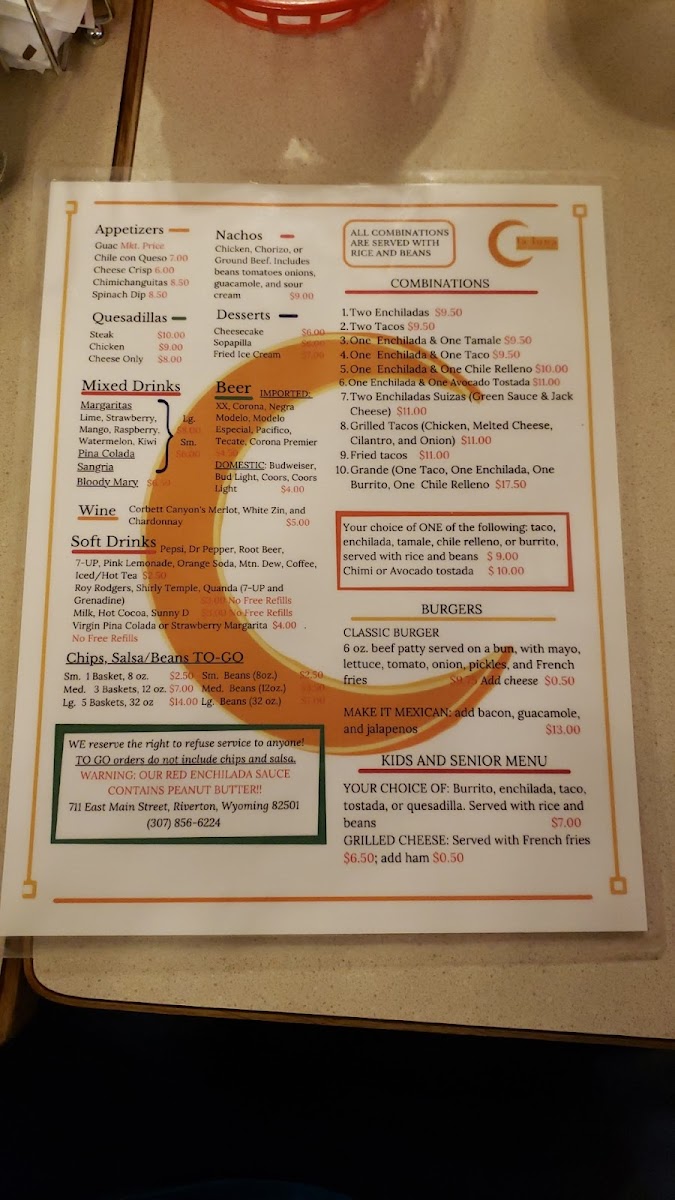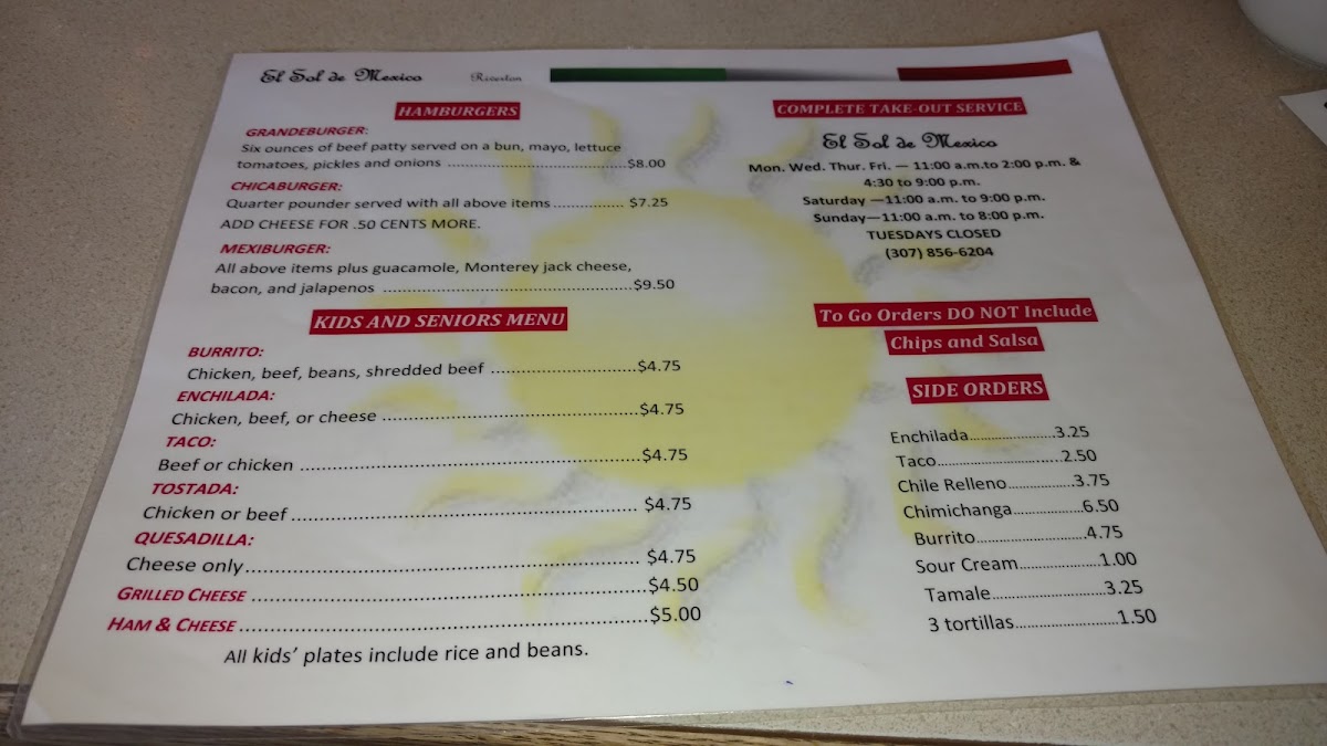 Kids And Seniors Menu
