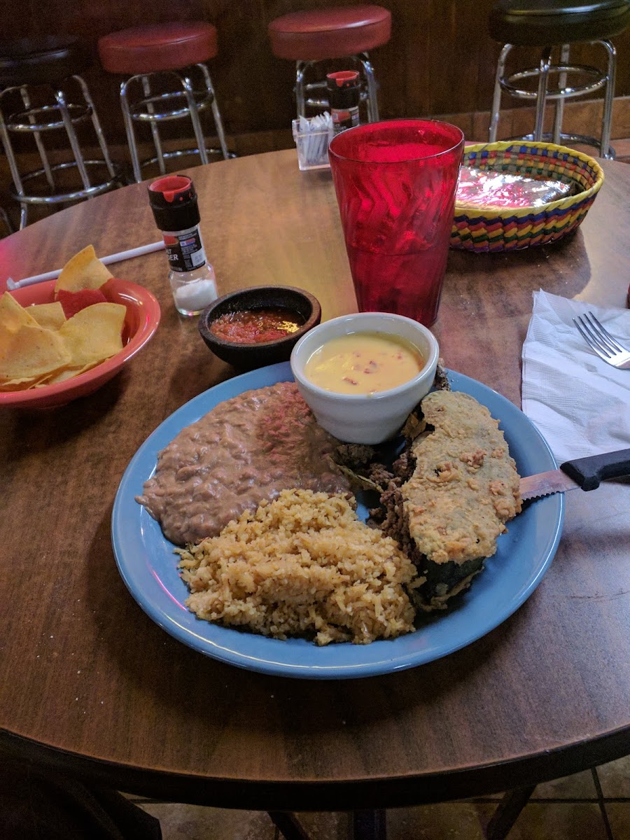 Just had one of the best Chicken Fried Steaks ever! Yes, we went to a Mexican Food restaurant and instead chose it There were still chips and good salsa served first. The steak had a choice of fries or baked potato so we had the later. The tender and flavorful steak filled half the plate (we took home half) and the white gravy was excellent. It had a small salad on the plate and dressing was graciously brought to us. We'll be back!
