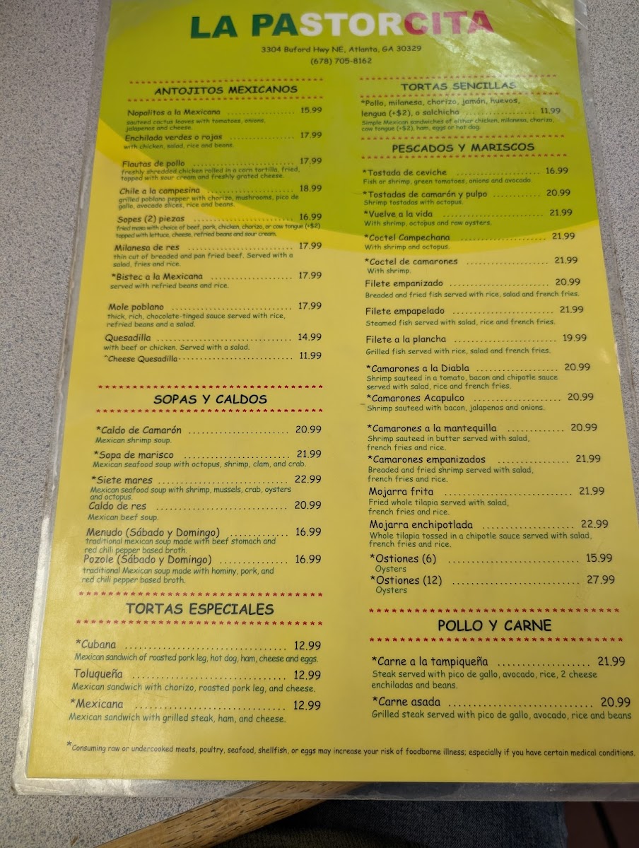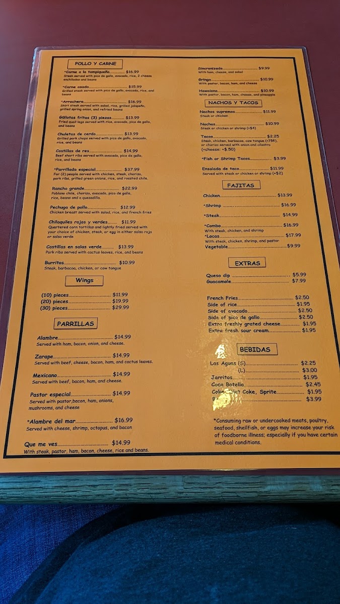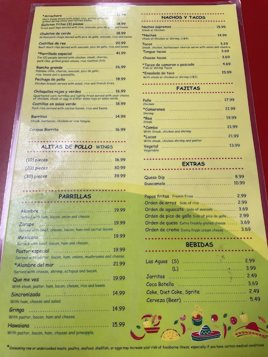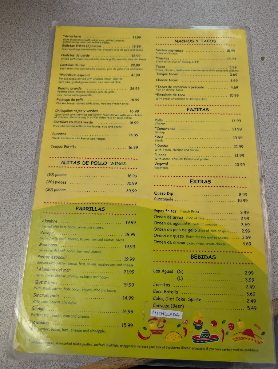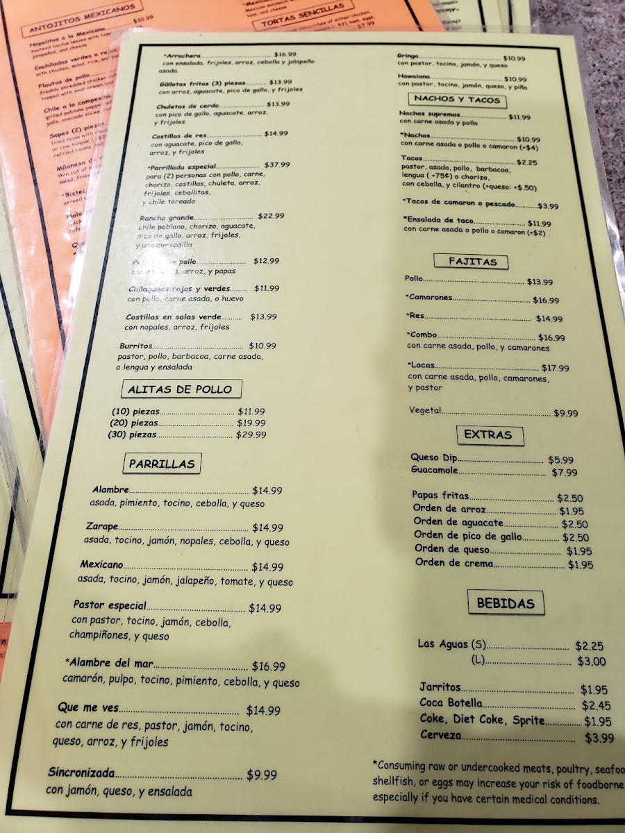 Circle of fried masa with choice of lengua (cow tongue) topped with lettuce, cheese, refried beans and sour cream.