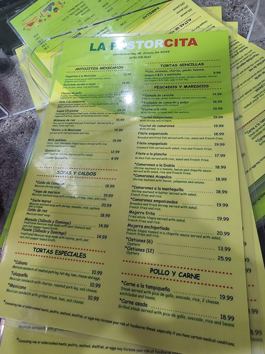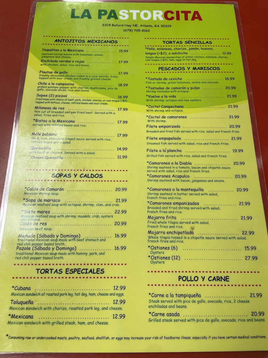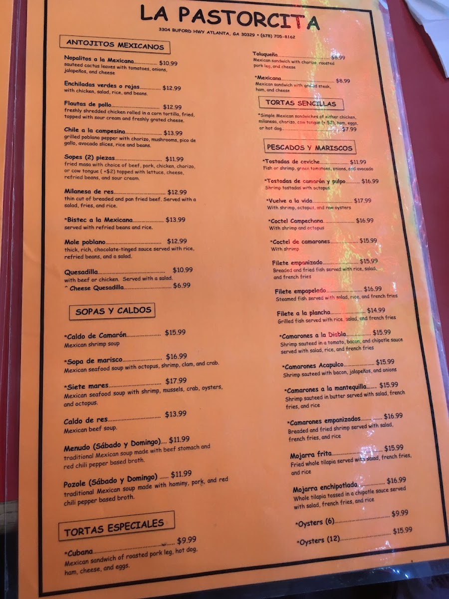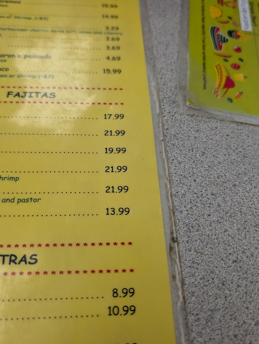 Circle of fried masa with choice of lengua (cow tongue) topped with lettuce, cheese, refried beans and sour cream.
