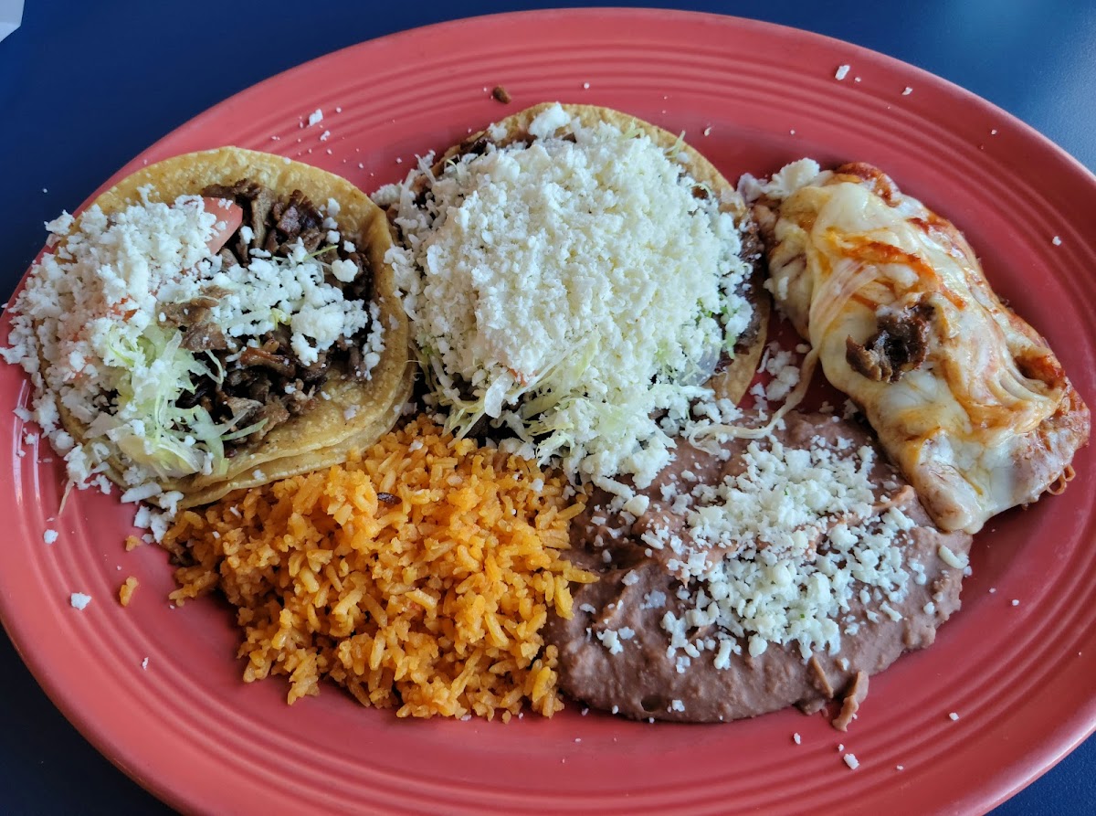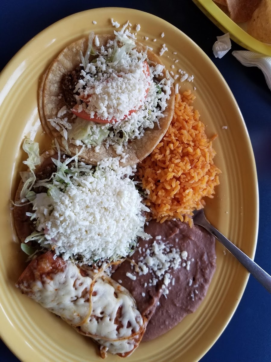 Excellent traditional Mexican food... pleasantly surprised and friendliest staff ever!! Free salsa and chips are a delicious part of the meal - it is hot though! Also, be sure to bring cash!!! It is cash only (even though there are no signs at the doorway), there is an ATM machine for convenience, but charges $2.50. Go for the combo!! Only complaint, they never came to refill drinks.. everything else was too good to knock off any stars though!