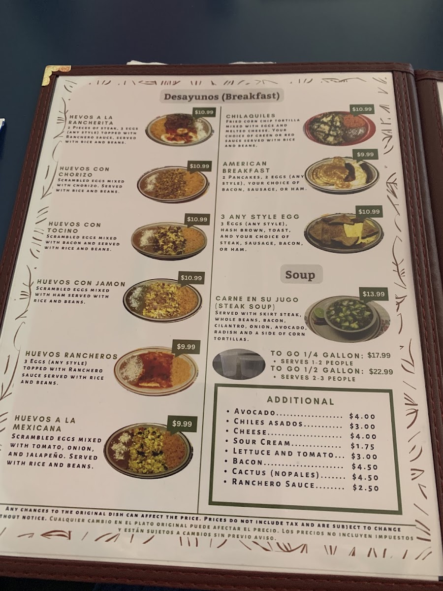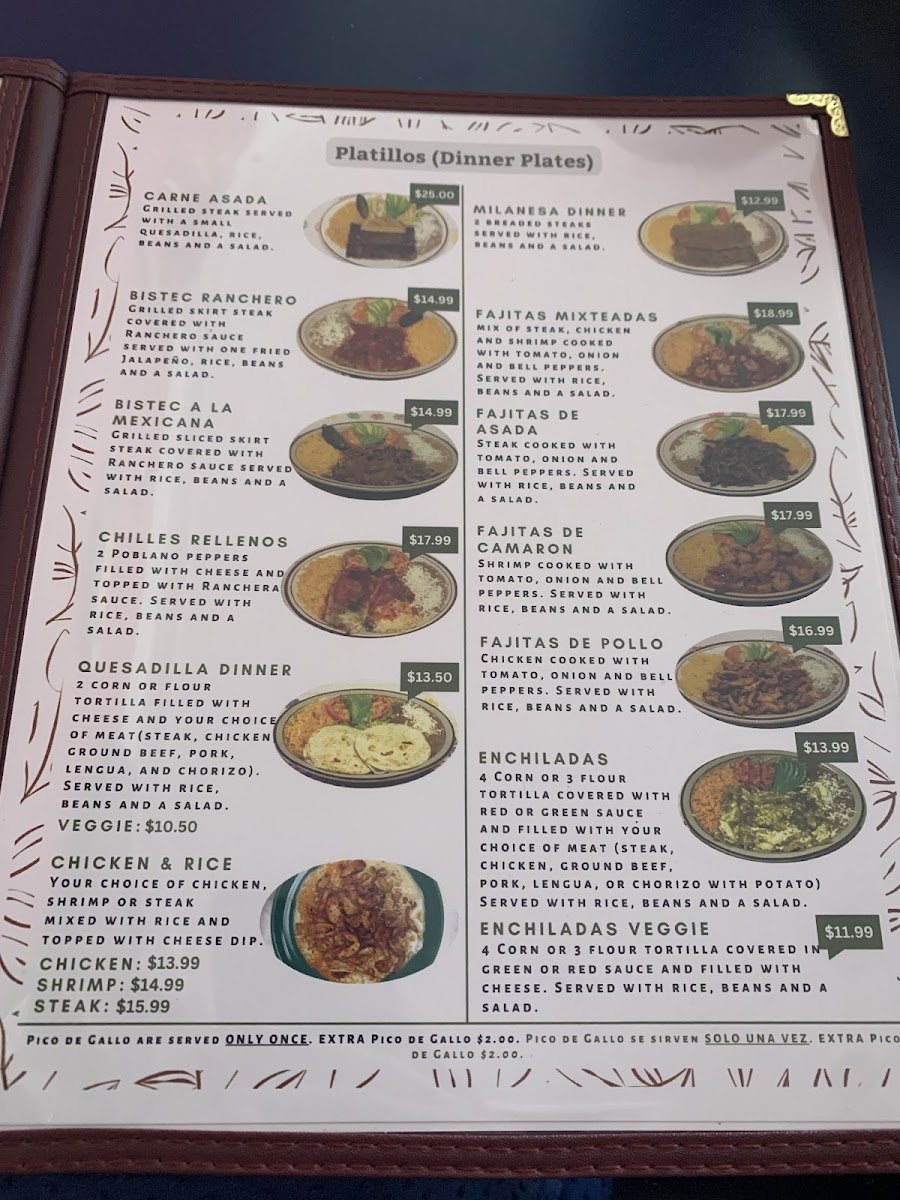 Served with beans and your choice of 2 meat (steak, chicken, pork, lengua or chorizo) rajas and nopales is another choice.