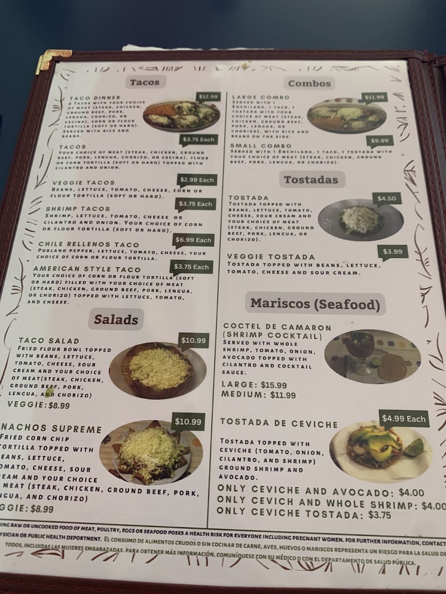 Your choice of meat (steak, chicken, ground beef, pork, lengua, chorizo, or cecina), flour or corn tortilla and your choice of toppings (cilantro, onion, lettuce, tomato, and cheese).