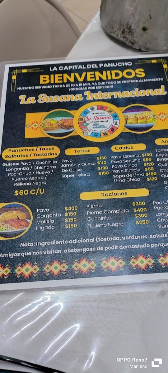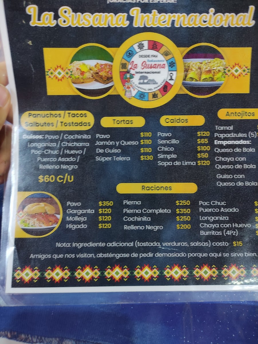 La Susana Internacional Menu