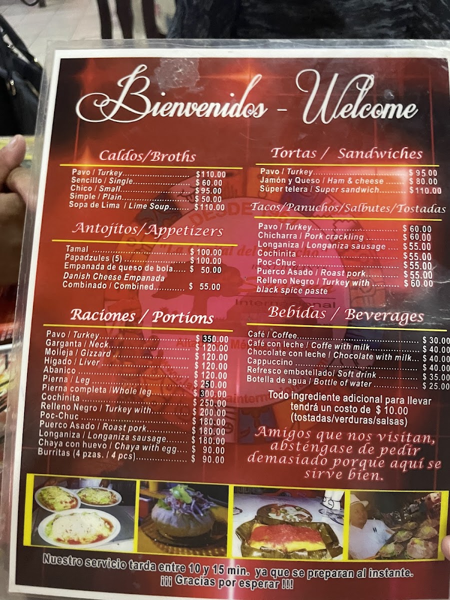 1 panucho vegetariano, 1 caldo sencillo (medio litro con verduras sin carne), 1 agua de litro.