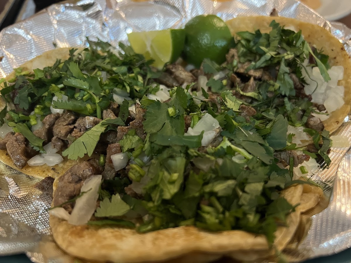 Steak tacos are delicious. Food always comes out super hot.