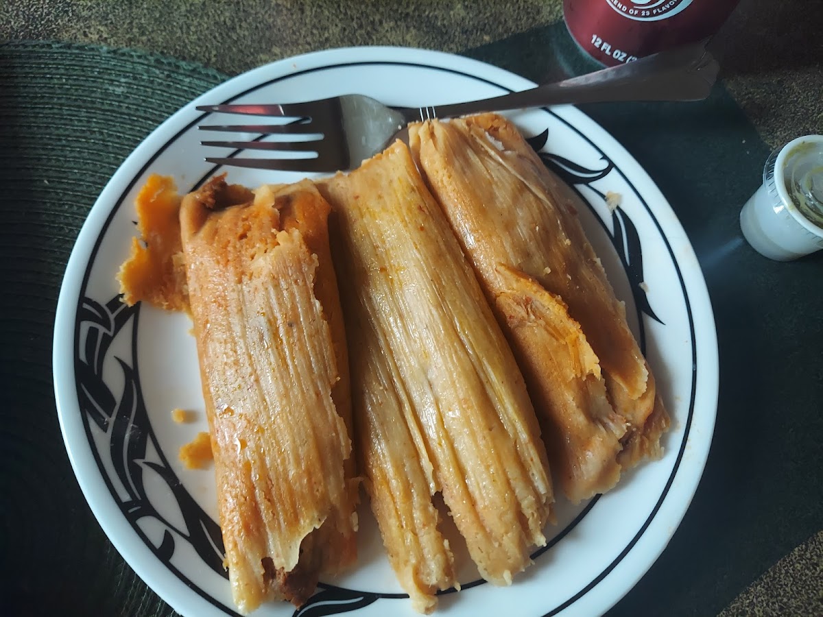 We each had a shredded chicken and carnitas taco on maize corn tortillas. They served them with a spicy verde sauce. Tacos were excellent! I wanted a tamale but they make from scratch and it is an hour wait so call ahead if you want them. There is no inside to this place. It is a walk up cash only place.