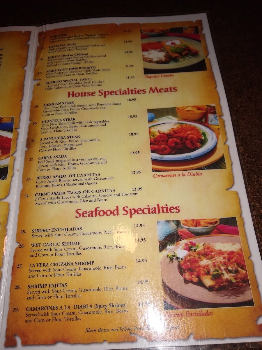 12 oz. new york steak topped with ranchera sauce served with rice, beans, guacamole and corn or flour tortillas