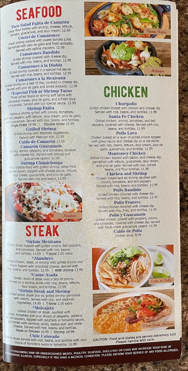 Chicken breast and six shrimp sautéed with onions,tomatoes,bell pepper served with rice and beans and tortillas