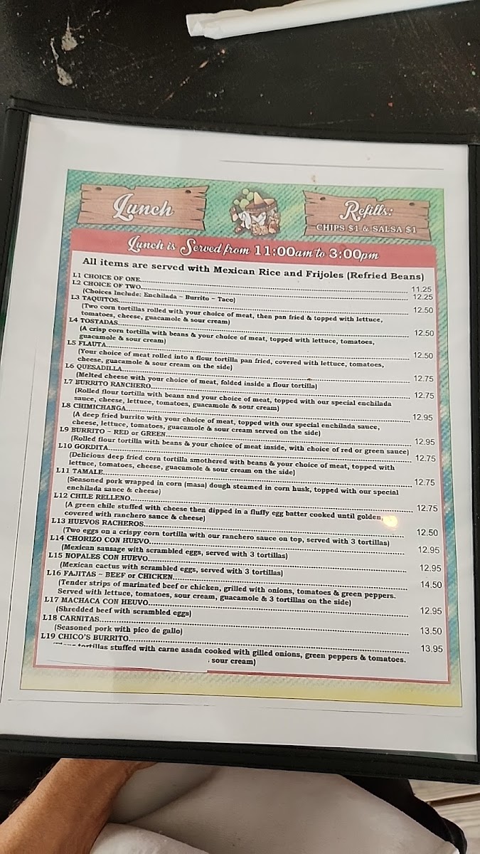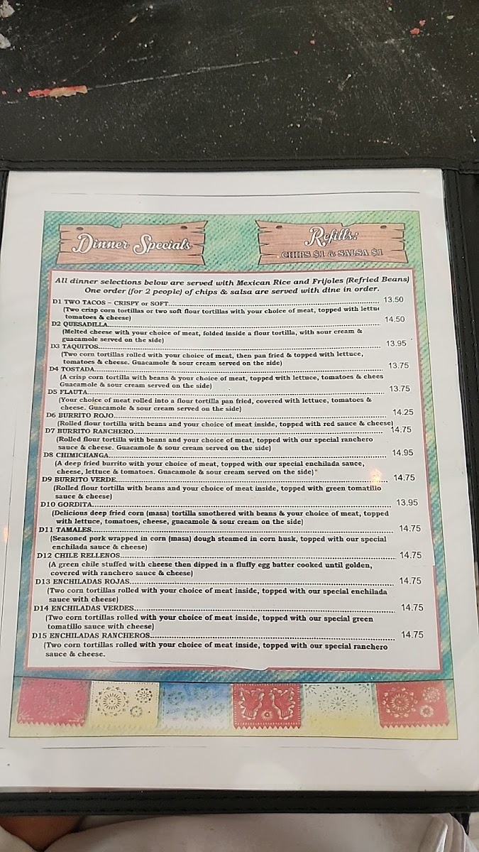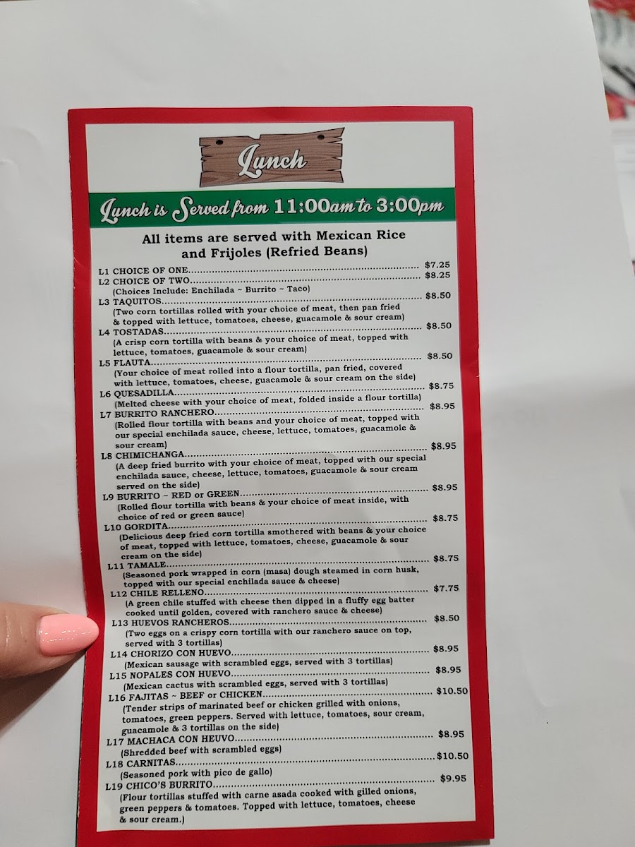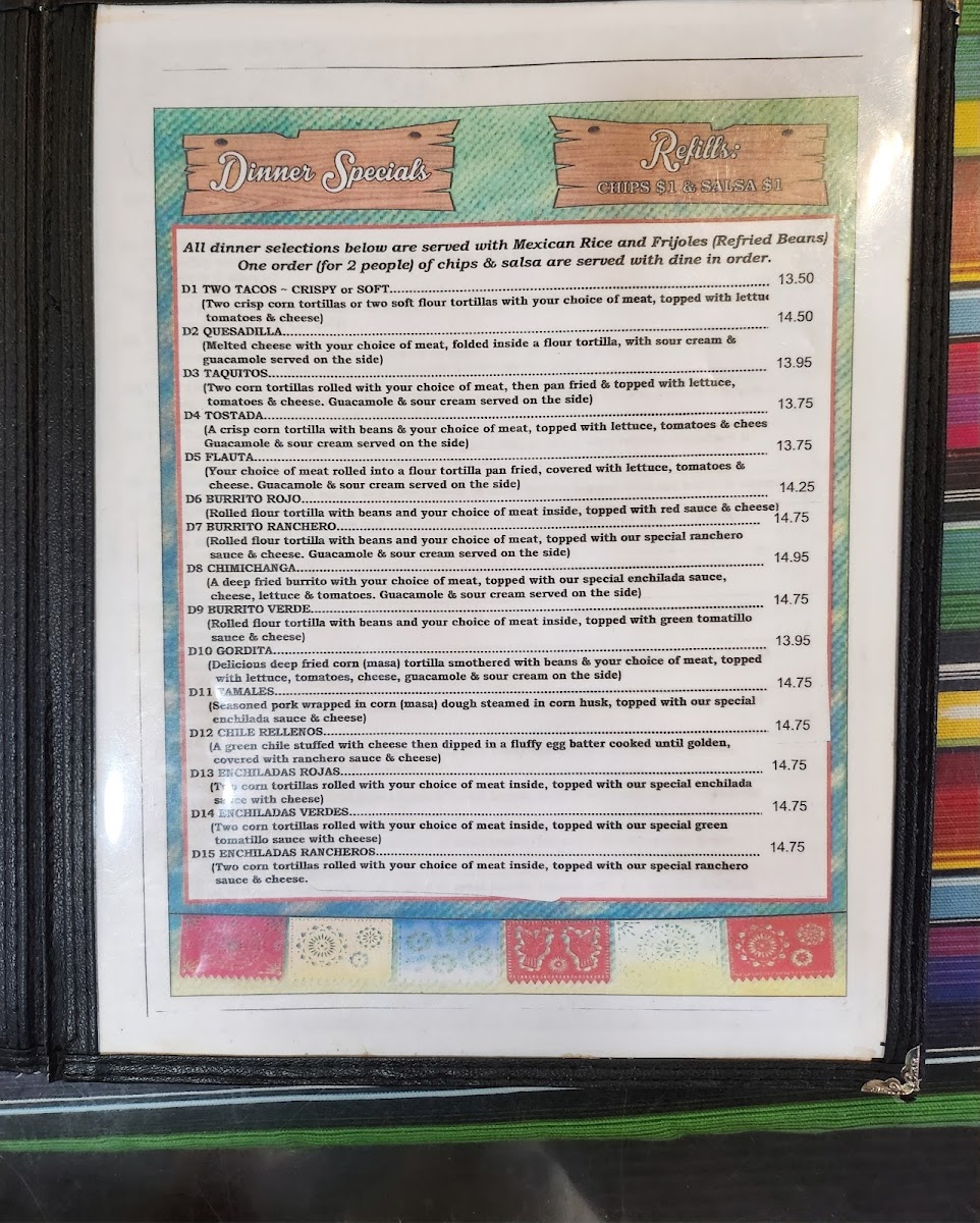 Two corn tortillas rolled with your choice of meat inside, topped with our special ranchero sauce & cheese.