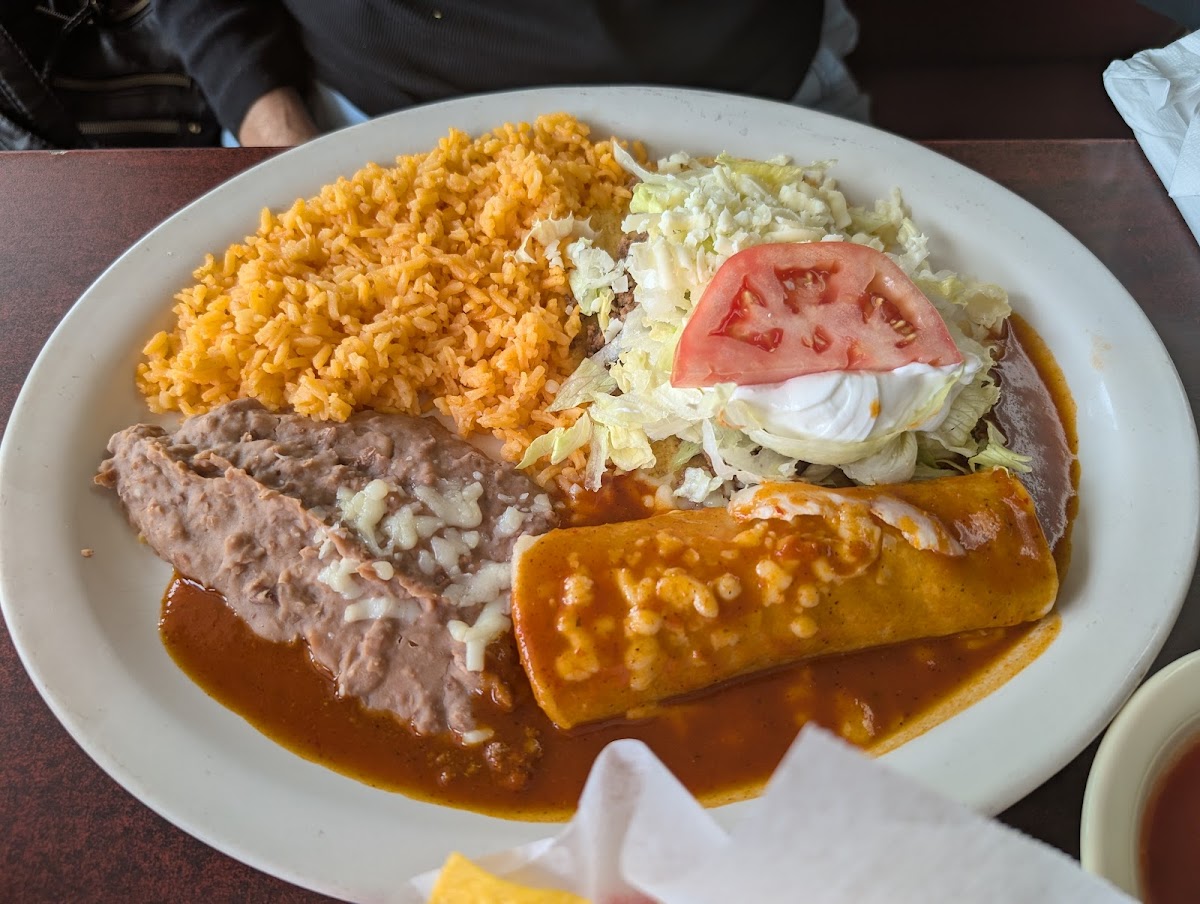 This place is the bomb! We love finding winners like Los Pinos when we travel. This was highly recommended by some of the hospital personnel. The Boom Boom burrito was the best burrito I've ever had. Chicken, steak and shrimp burrito topped with two pineapple slices and queso!! For. The. Win!! I'm a big eater but this one filled me up. Prices are lower than we expected. $33 covered food, soft drinks, taxes and tip for both of us. Service was helpful, super fast and courteous. Don't miss Los Pinos. If I lived nearby, I'd eat here often!