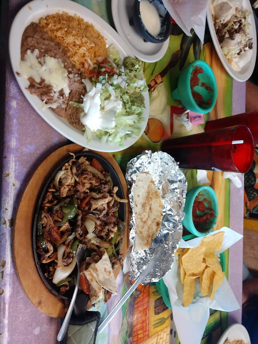 Always big portions of delicious food. You also get free chips and salsa. We ordered Queso to dip chips in as well. Great service and always love the decor. Colorful and nice.