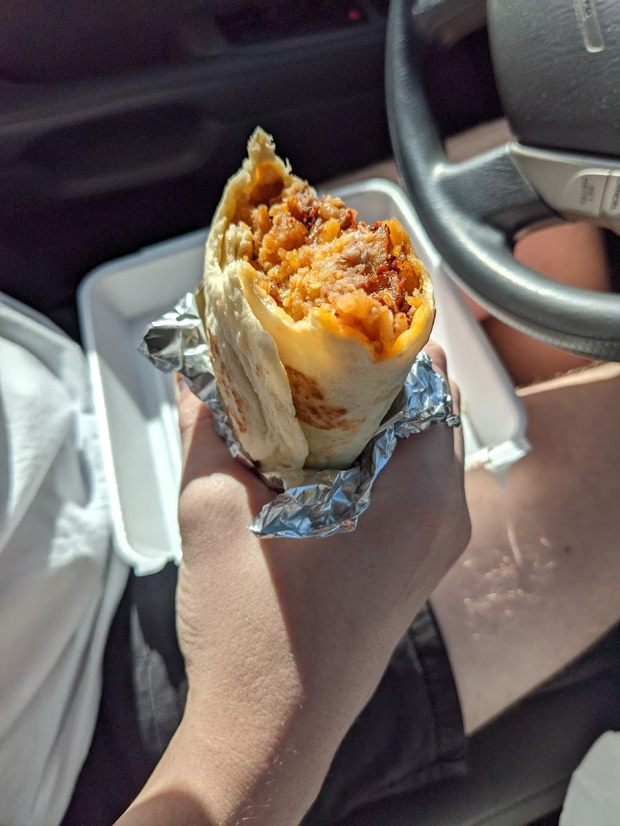 Amazing breakfast burrito, homemade tortilla and the best salsa so AMAZING