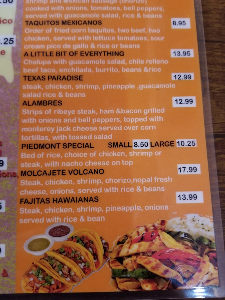 Steak, chicken, shrimp, carnitas and chorizo (Mexican sausage)