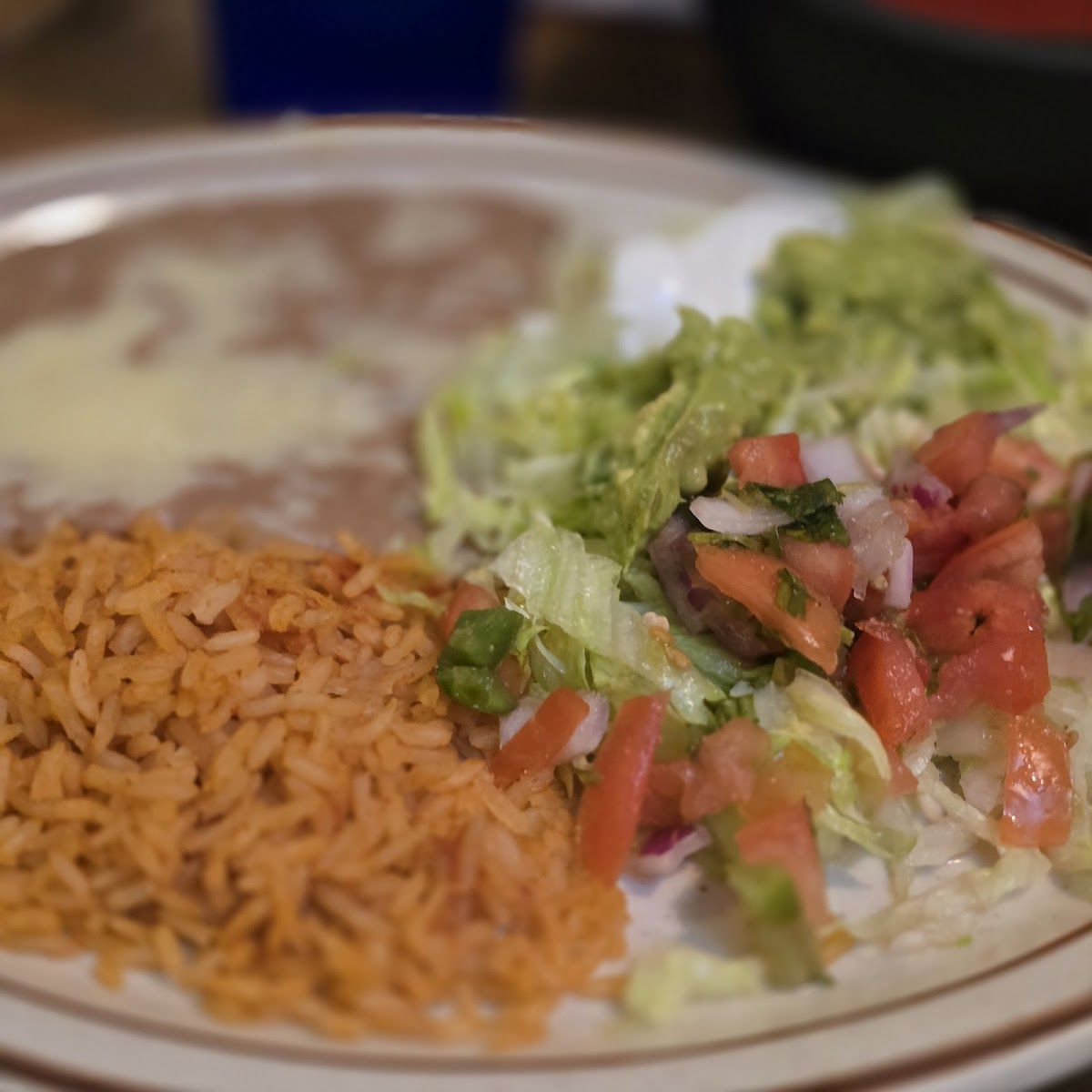 Missed the food pics, it disappeared before I coud sneak a shot. Good salsa, a bit loose and hard to keep on a chip. The front of my teal shirt is proof of that. Standard queso. Supreme Burritos were spot on, faJita style meat and vegetables filled the tortillas, one steak and one chicken, topped with sour cream, guac, lettuce, tomatoes and queso. Lots of flavor. No rice or beans served with, no problem here as I shove them aside but some may be disappointed. One of the best dishes I've had in some time. 9.99 Will return, with pics next time.