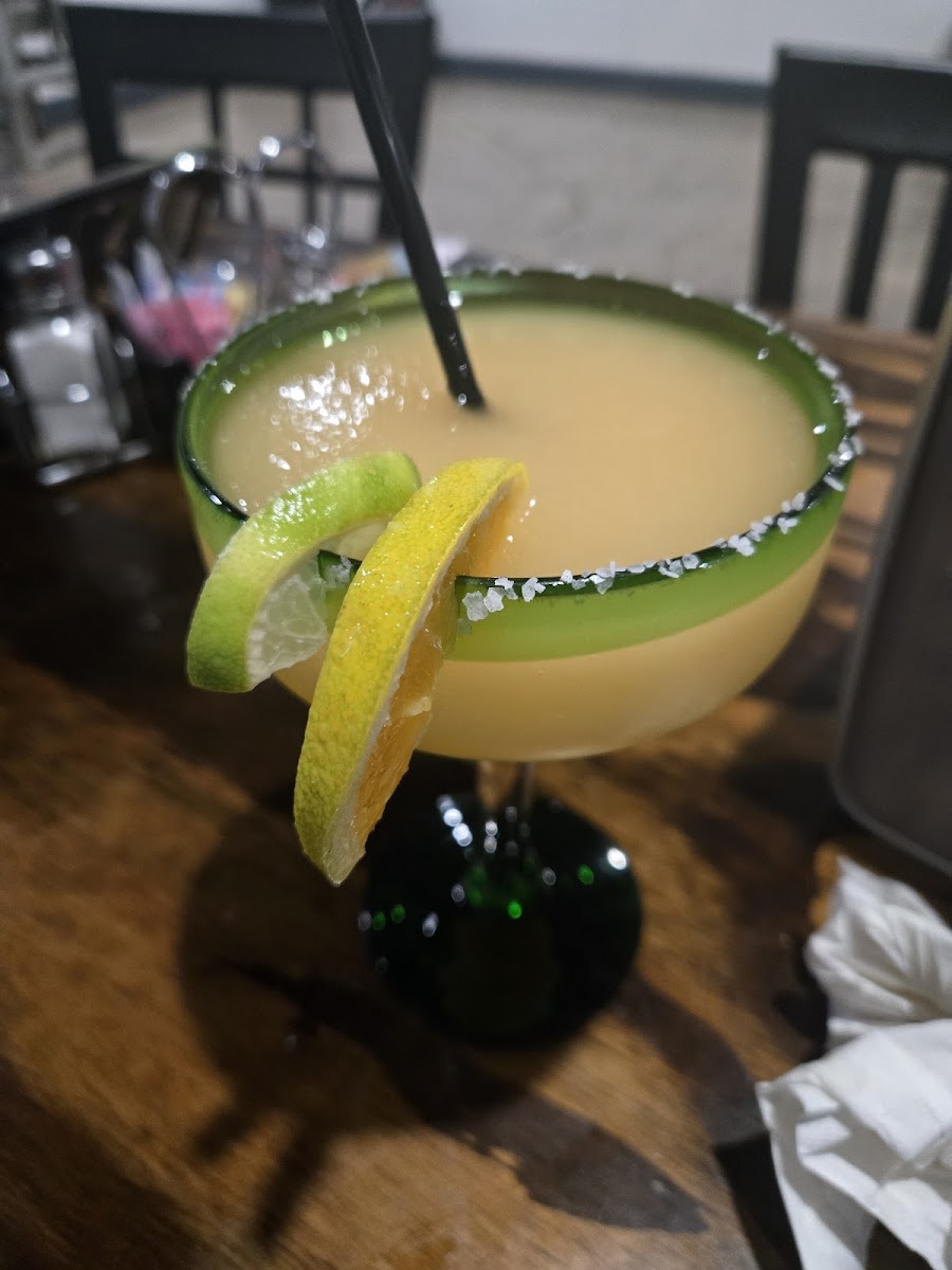 I ordered street tacos and you might as well call them neighborhood tacos cause their portions were huge and the chicken tortilla soup was great too! Our waitress was a sweet girl named Miracle who took very good care of us and she recommended the peach margarita for my wife and she loved it!