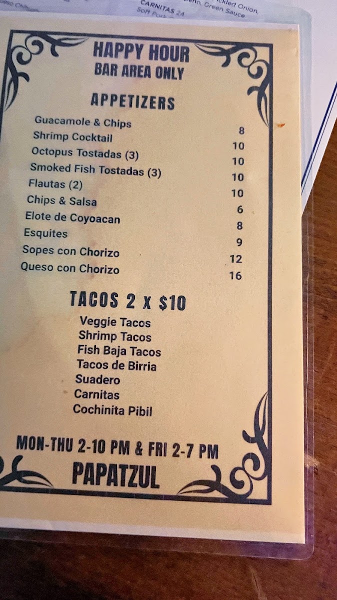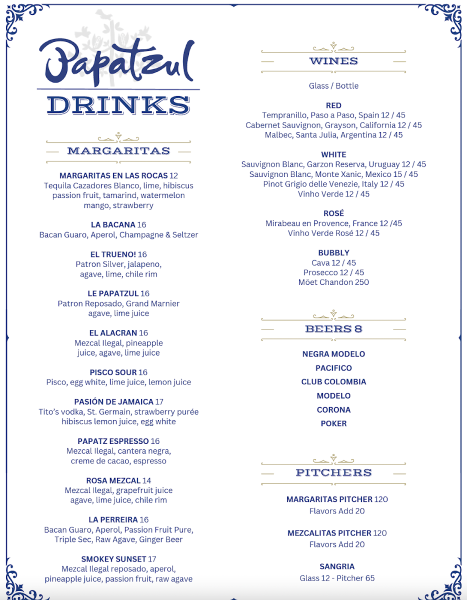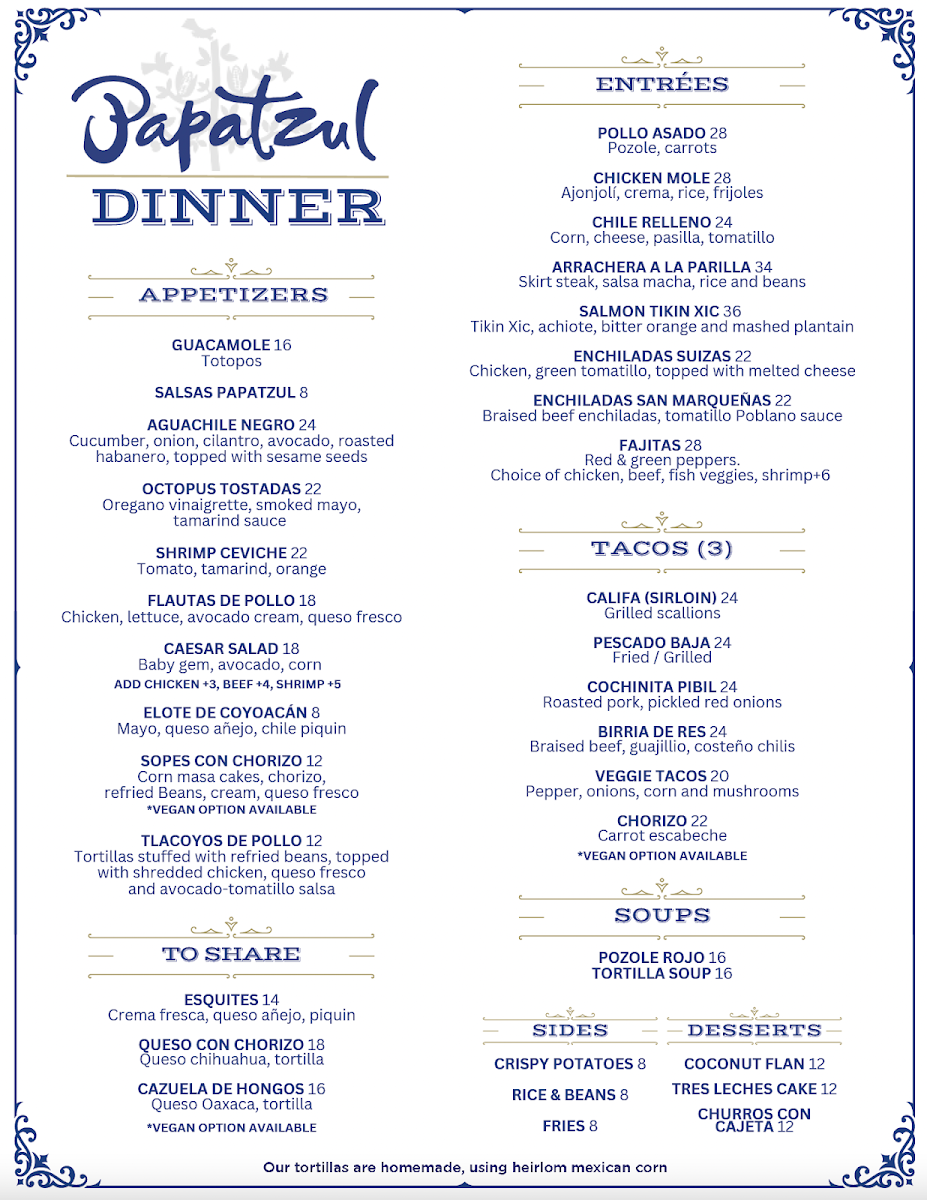 Chorizo & Queso Chihuahua Cazuela, TortillasCrisp Corn Tortillas filled with Shredded Chicken, Potatoes, Drizzled with Guajillo Salsa, Avocado Cream, Crema, Queso Fresco