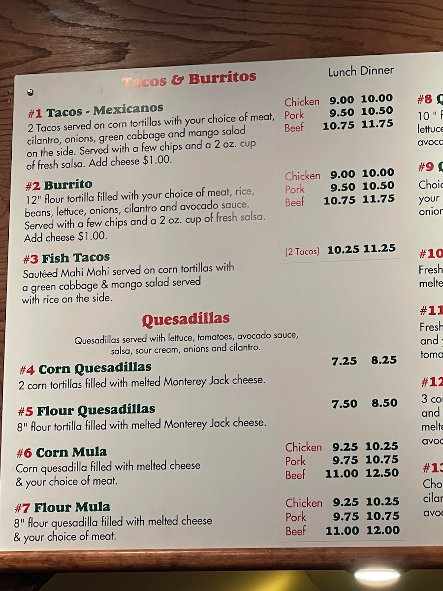 (cheese, chicken, beef or pork) 2 corn tortillas filled with your choice of cheese, chicken, beef or pork served with fresh green vegetable sauce and melted cheese. served with black beans, rice, onions, and cilantro